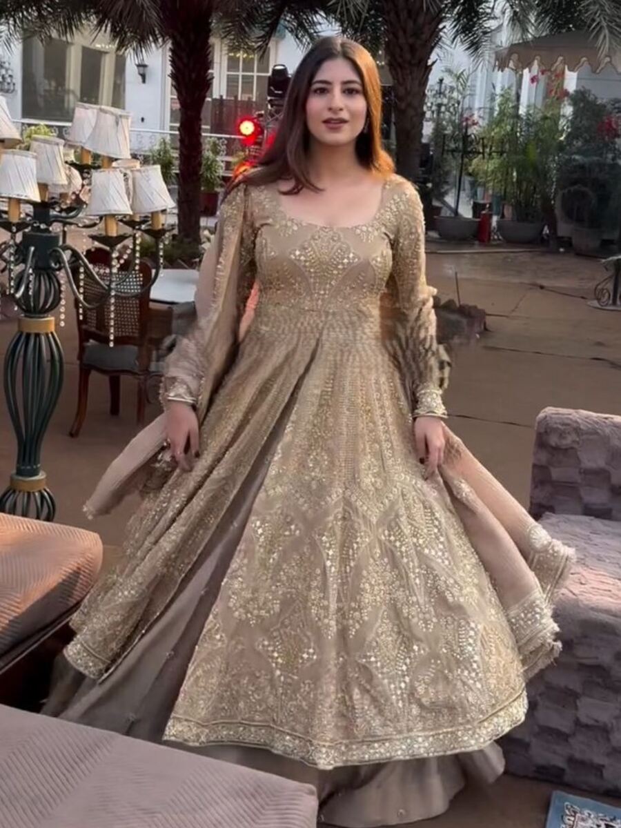 TOP WORK :- HEAVY EMBROIDERY SEQUENCE WORK WITH FULL EMBROIDERY SLEEVE