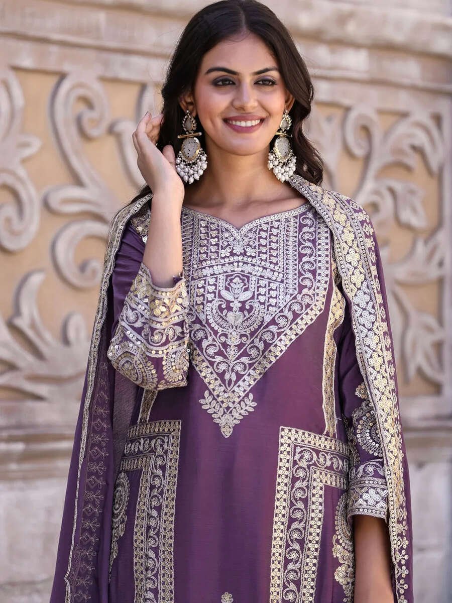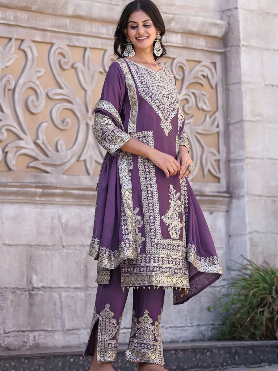 PALAZZO FABRIC :- PURE CHINON SILK WITH HEAVY EMBROIDERY CODING DORI-SEQUENCE WORK WITH ELASTIC