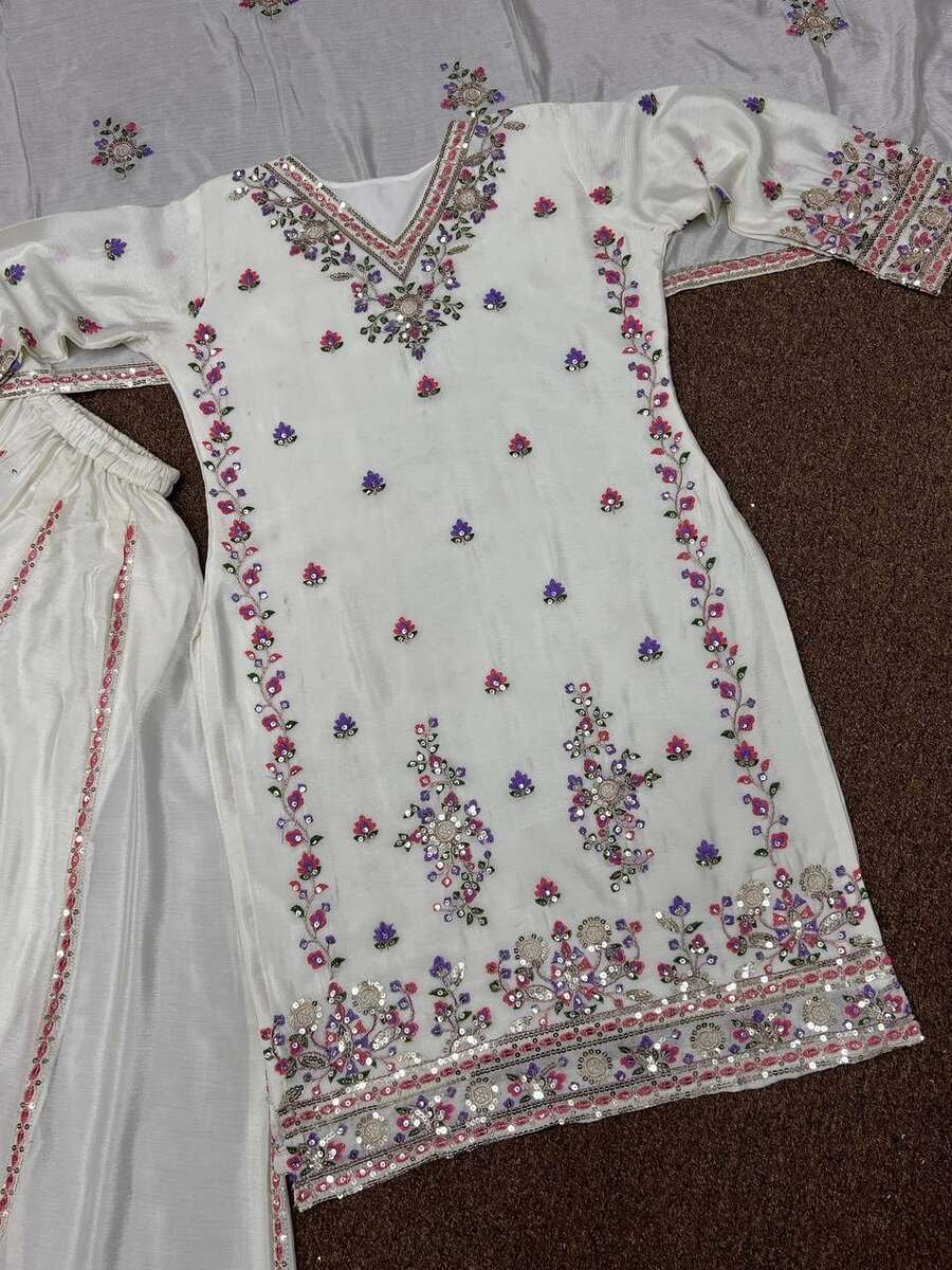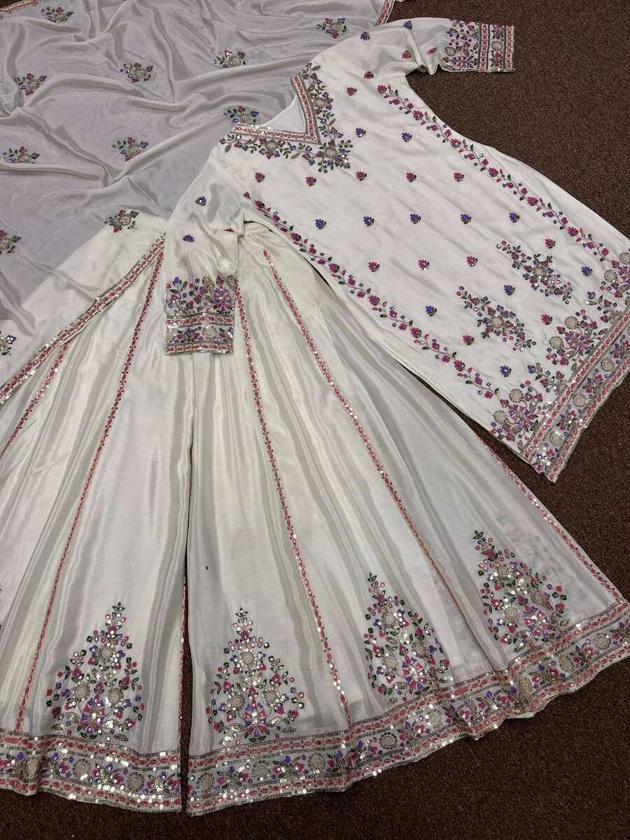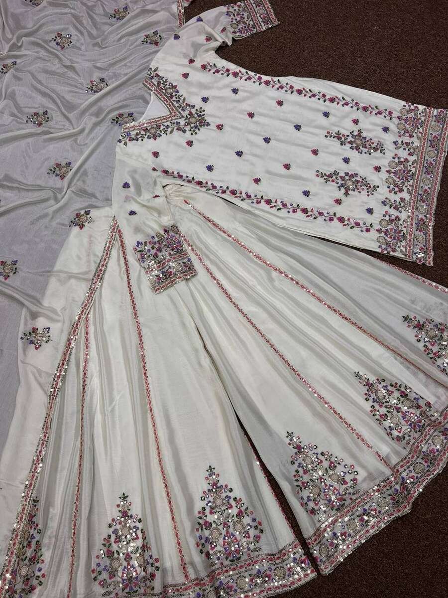 PALAZZO FABRIC : PURE CHINON SILK WITH FANCY HEAVY EMBROIDERY THREAD AND SEQUENCE WORK