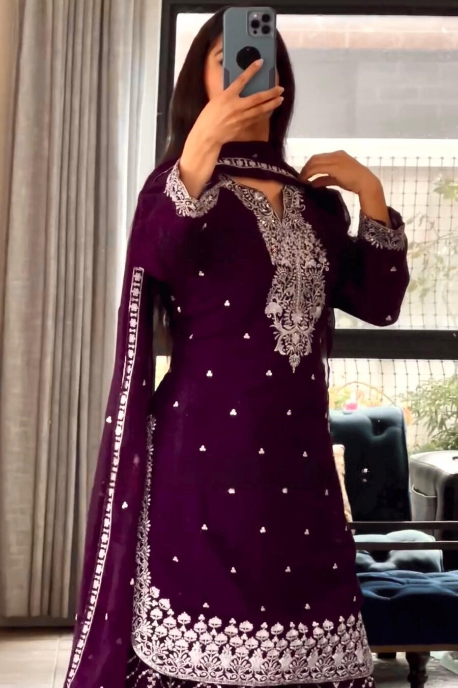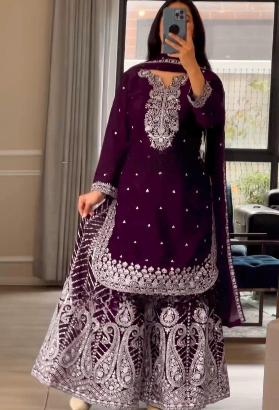 WORK : HEAVY EMBROIDERY WORK WITH FANCY BORDERS LACE WORK SLEEVE WITH FANCY LATKAN DORI