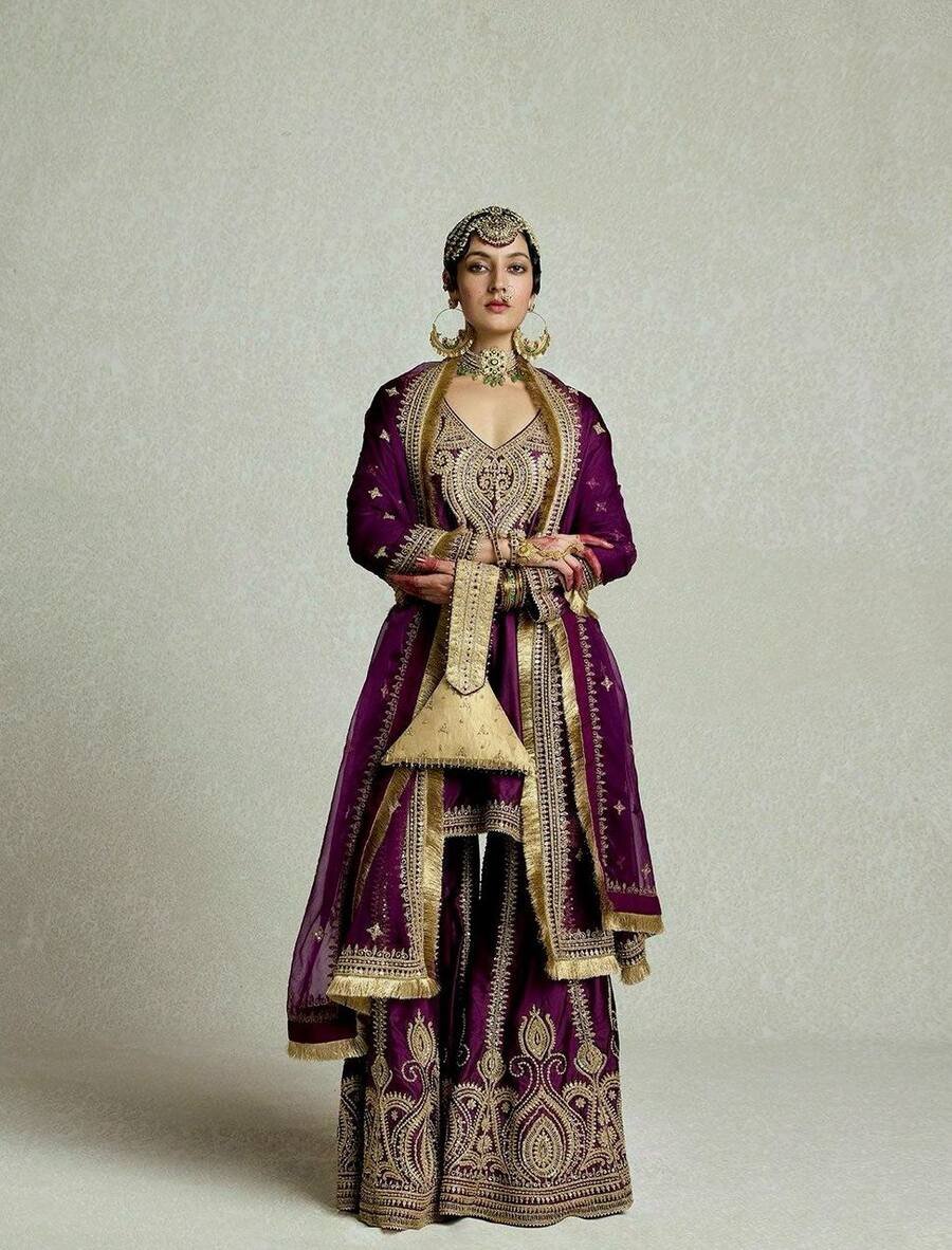 DESIGNER CHINON SILK SEQUENCE EMBROIDERY LACE WORK TOP PALAZZO WITH DUPATTA PURPLE