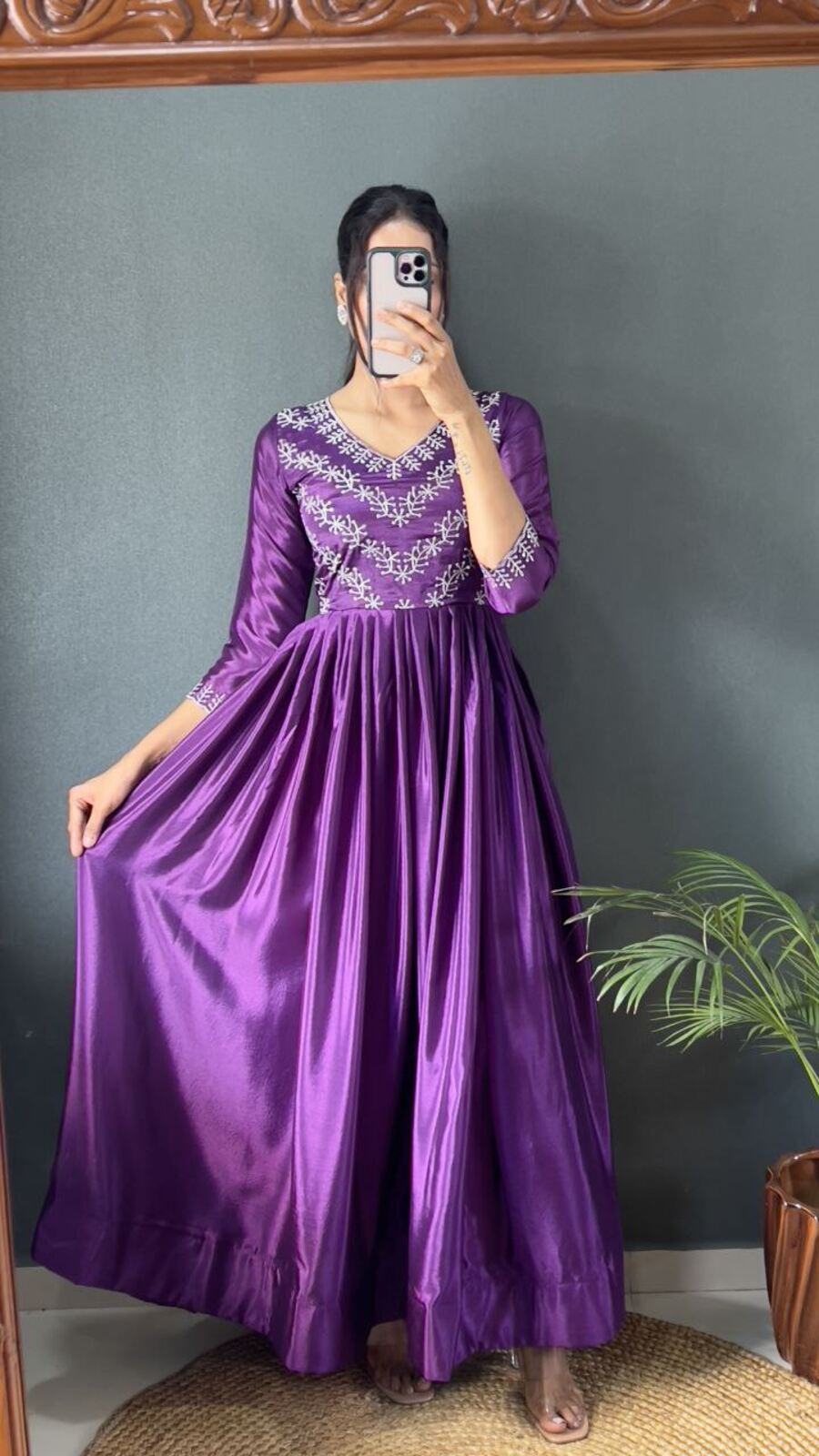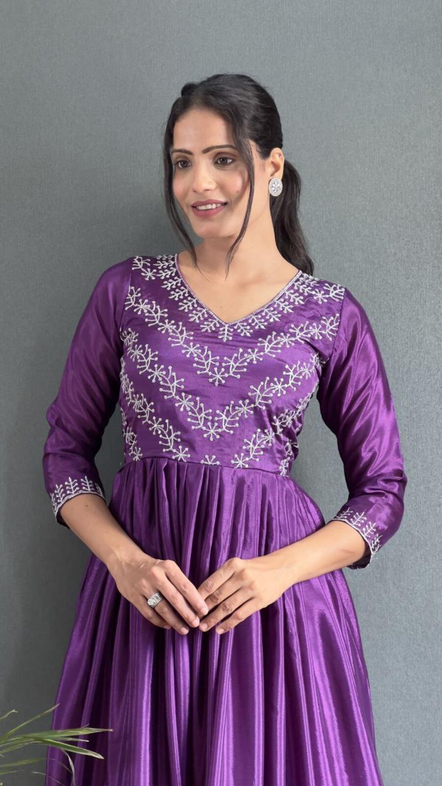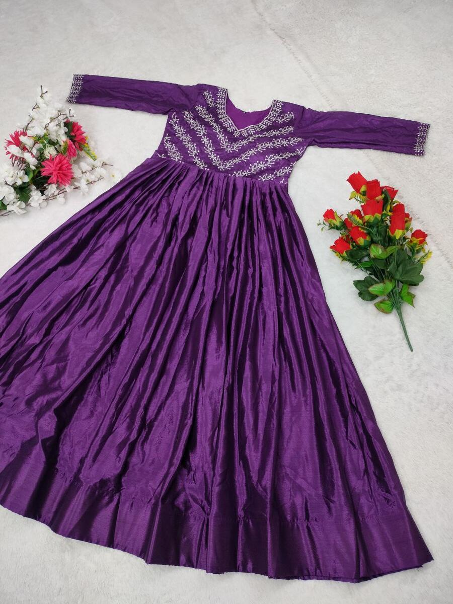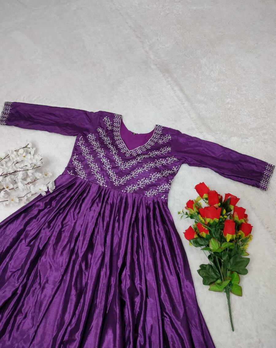 FABRIC :- PREMIUM CHINON SILK WITH DESIGNER THREADS & SEQUENCE WORK