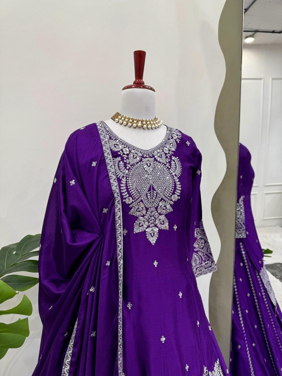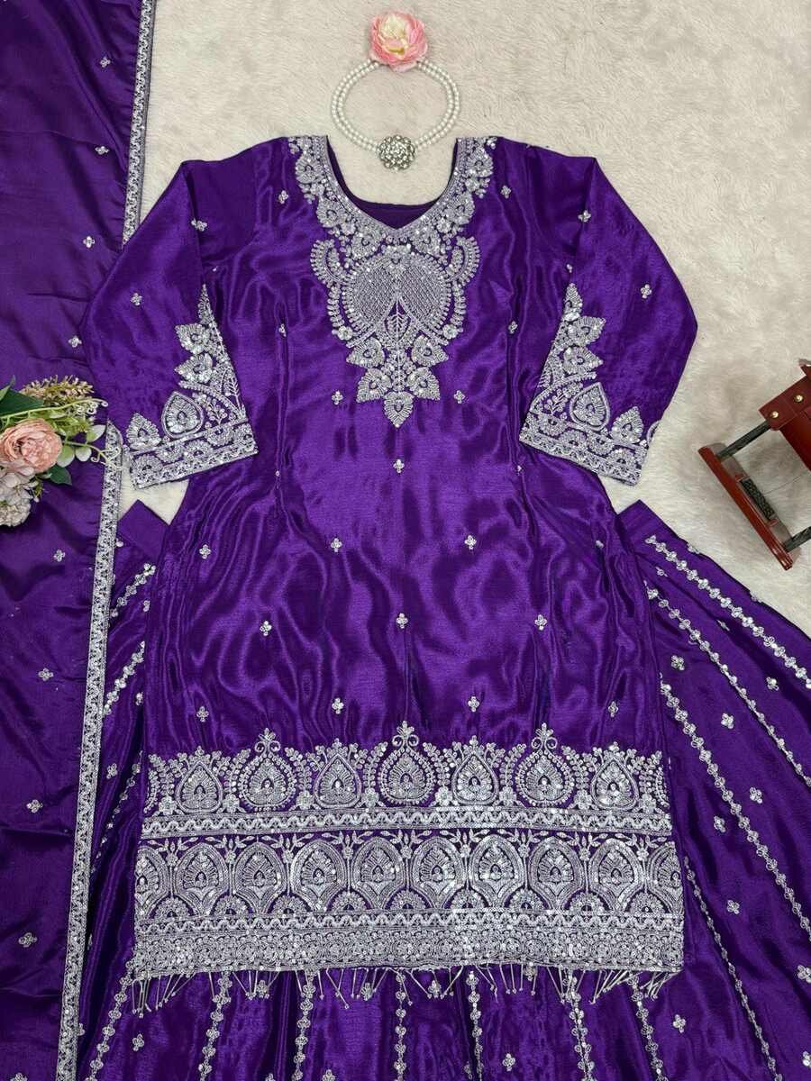 DESIGNER CHINON SILK THREAD WITH SEQUENCE WORK TOP LEHENGA WITH DUPATTA PURPLE