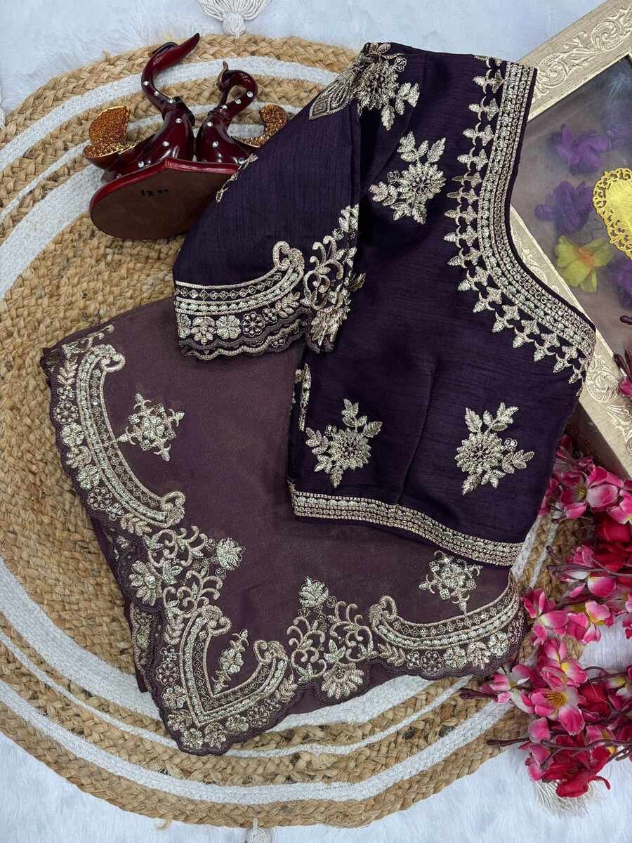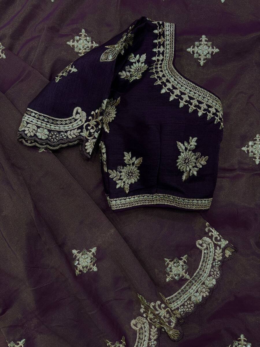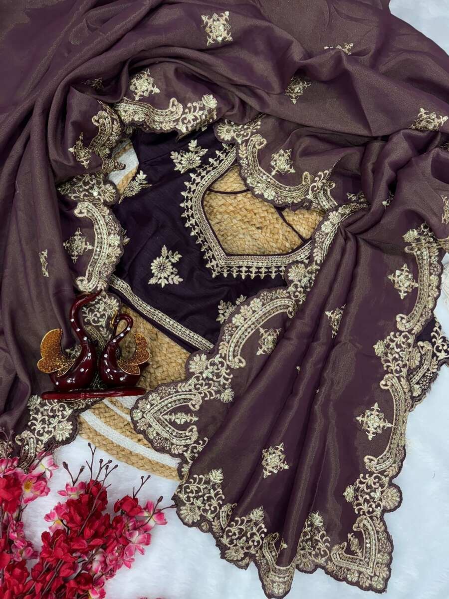 DESIGNER COPPER GOLD SILK SEQUENCE AND ZARI EMBROIDERY WORK SAREE WITH UNSTITCHED BLOUSE PURPLE