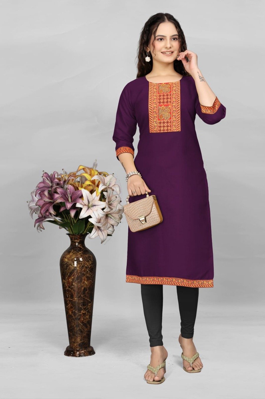DESIGNER COTTON EMBROIDERY LACE WORK ONLY KURTI WINE