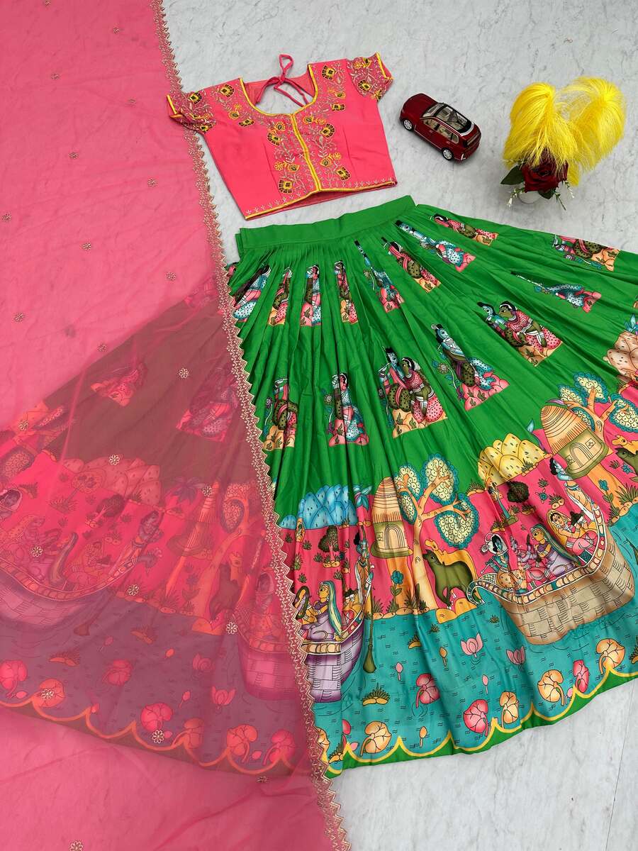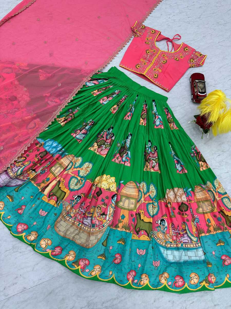 DESIGNER COTTON EMBROIDERY THREAD WORK LEHENGA CHOLI WITH DUPATTA GREEN