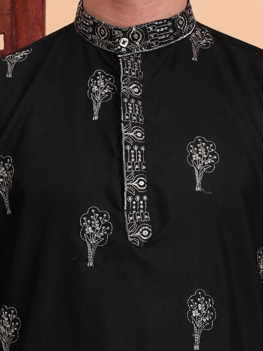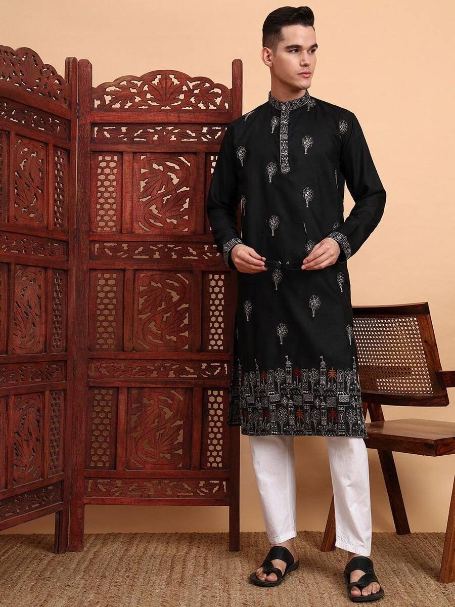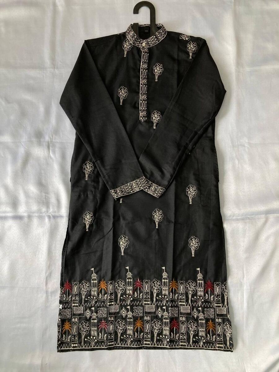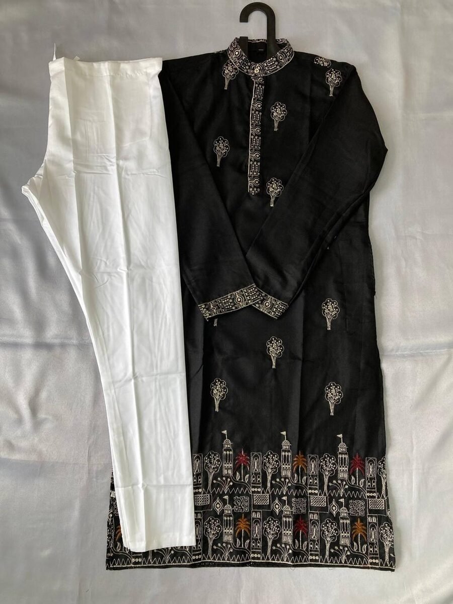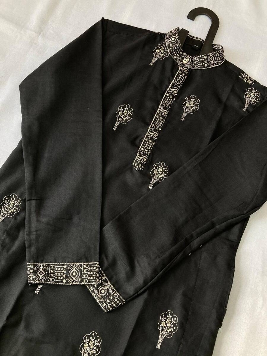 DESIGNER COTTON EMBROIDERY WORK MEN’S KURTA PAYJAMA BLACK