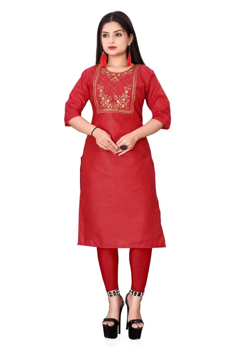 DESIGNER COTTON EMBROIDERY WORK ONLY KURTI RED