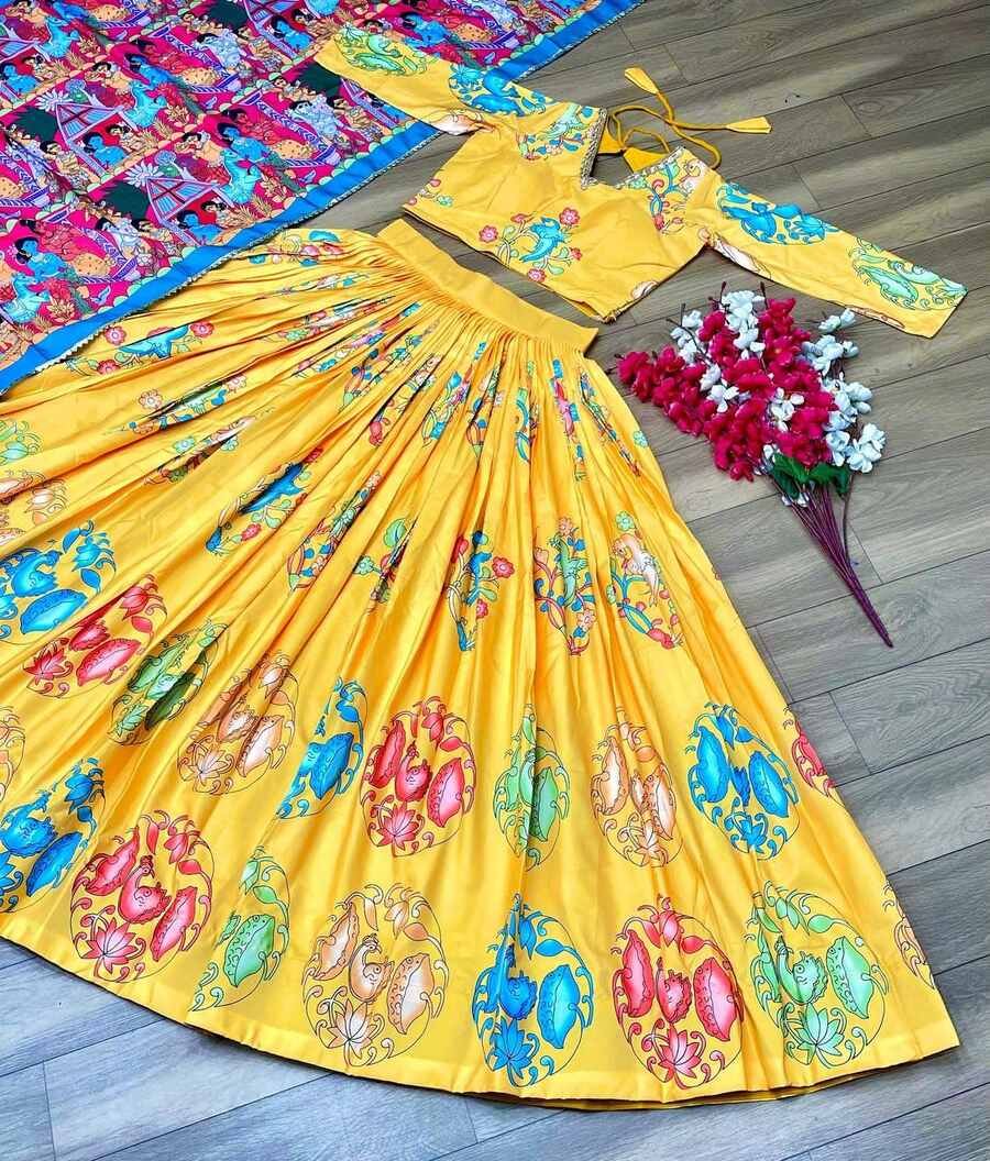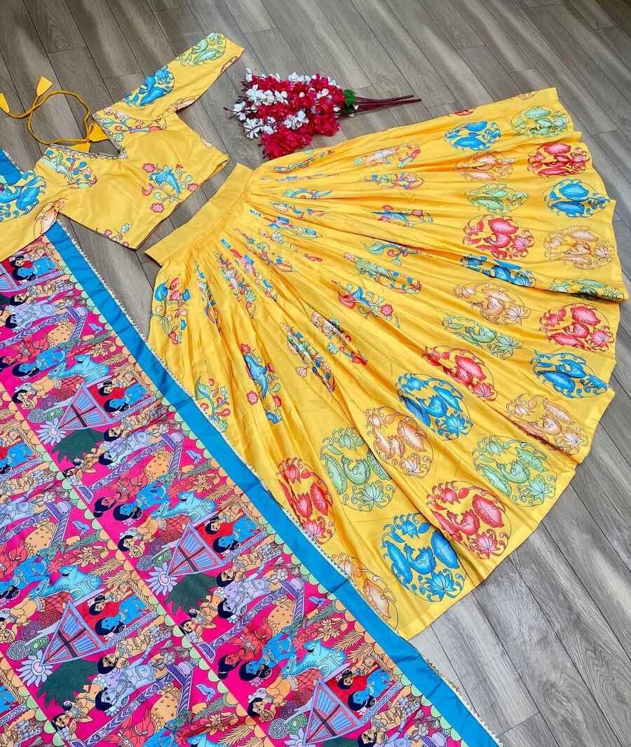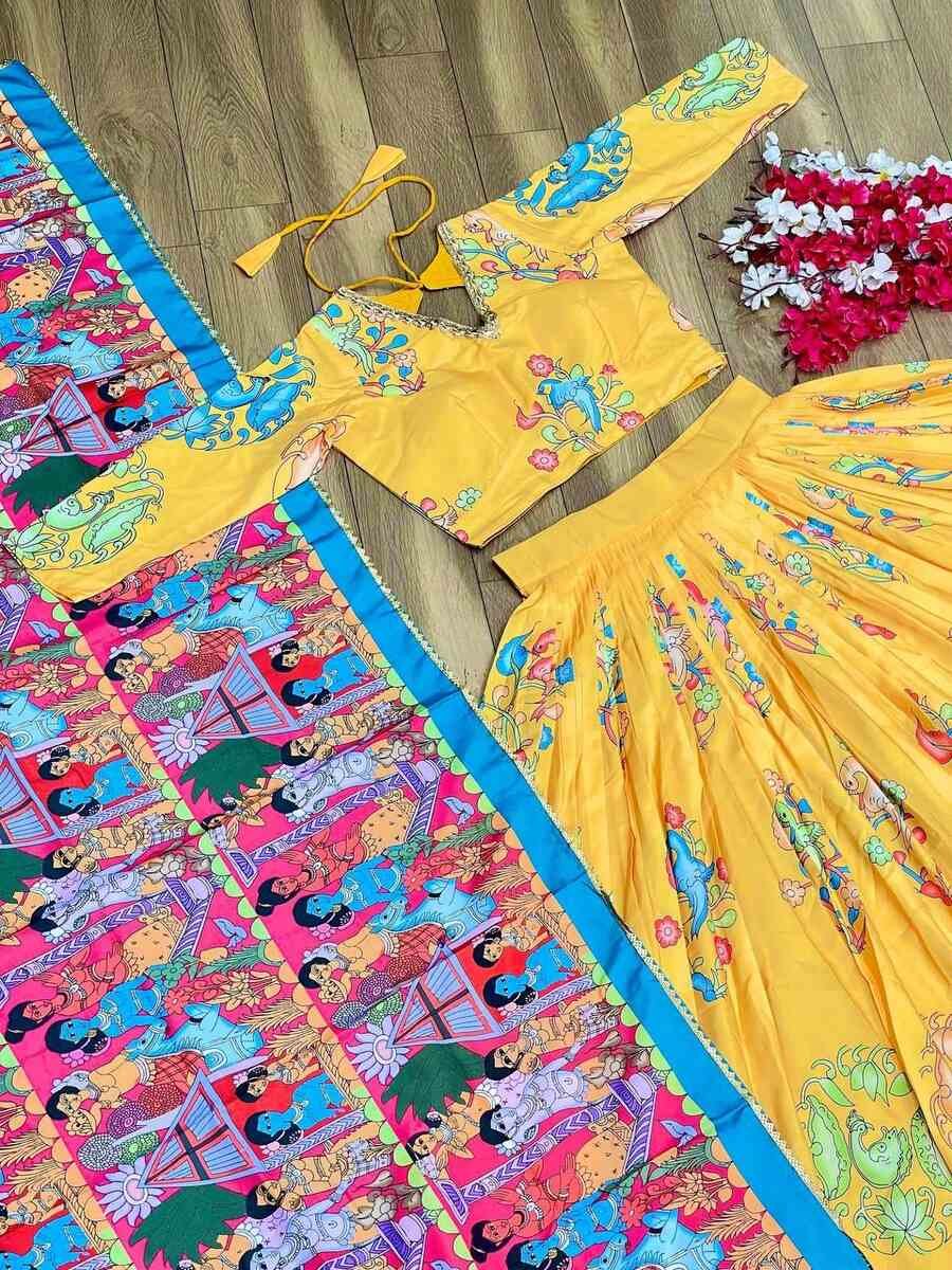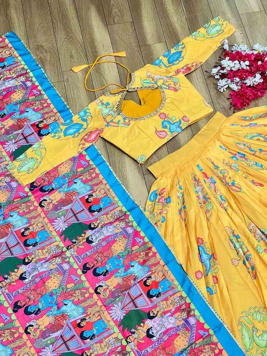 DESIGNER CREPE KALAMKARI PRINT WORK LEHENGA CHOLI WITH DUPATTA YELLOW
