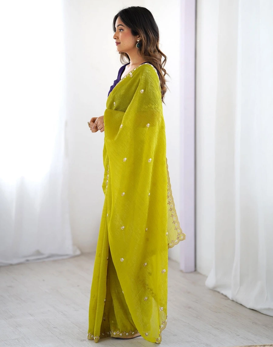 WORK : FULL EMBROIDERY CUT WORK AND WHITE STONE