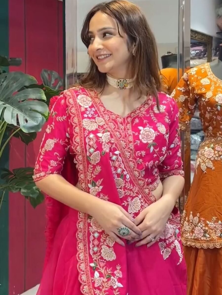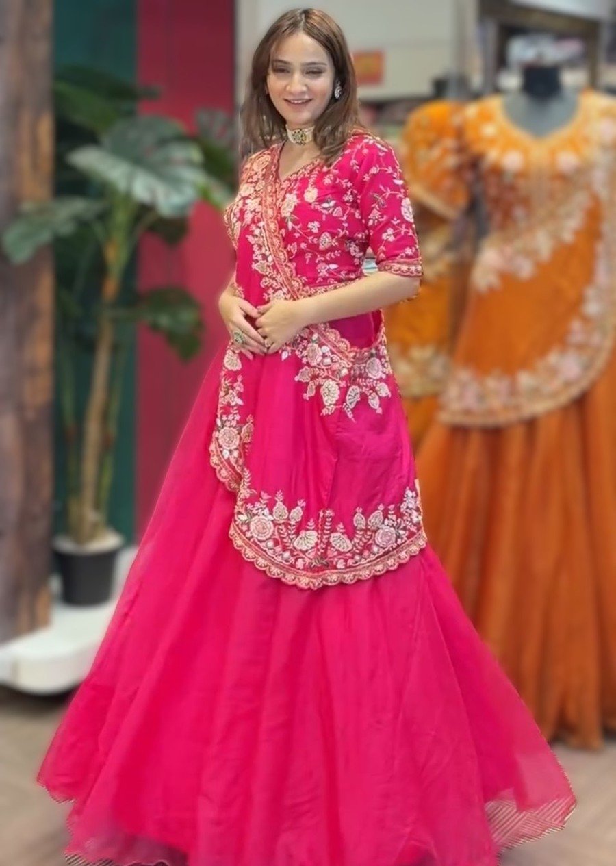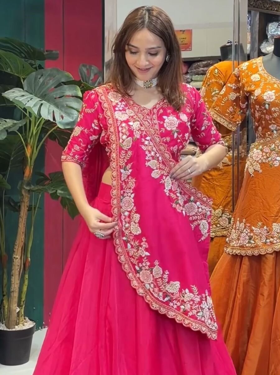DESIGNER CRUNCHY SILK EMBROIDERY SEQUENCE WORK LEHENGA CHOLI WITH DUPATTA RANI