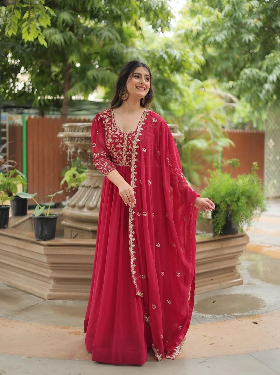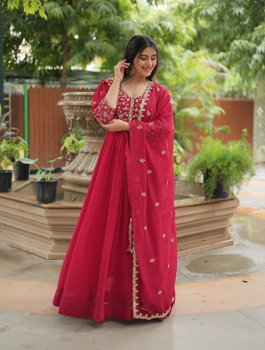 DESIGNER FAUX BLOOMING SEQUENCE EMBROIDERY WORK GOWN WITH DUPATTA MAROON