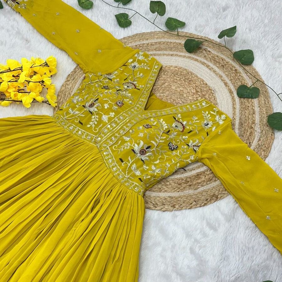 DESIGNER FAUX BLOOMING ZARI-SEQUENCE & EMBROIDERY WORK GOWN WITH DUPATTA YELLOW