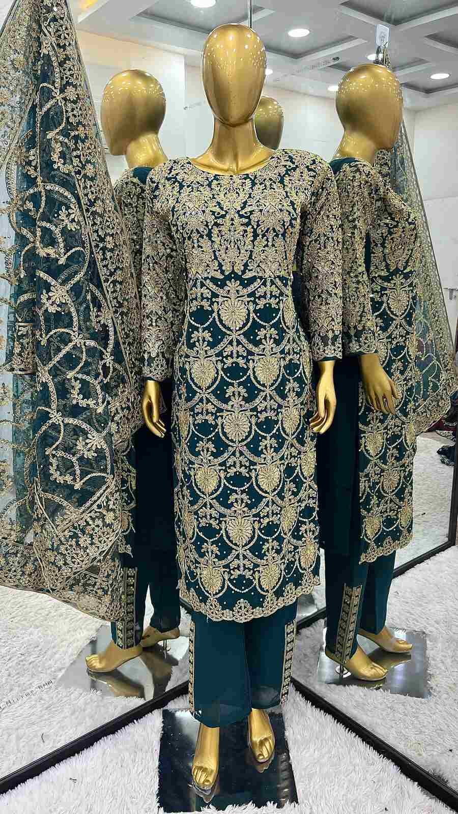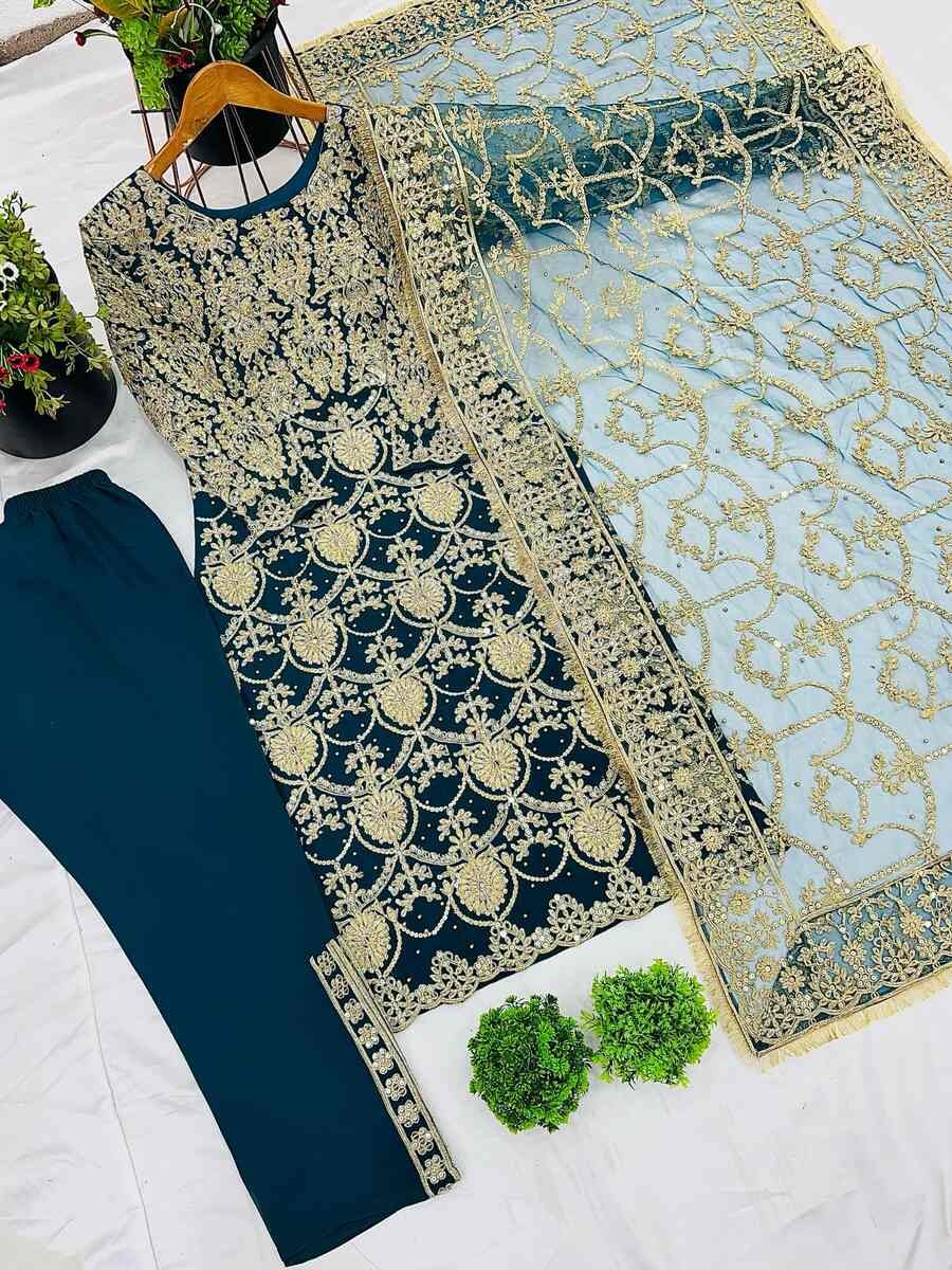 DESIGNER FAUX GEORGETTE EMBROIDERY SEQUENCE WORK AND BEATS WORK TOP BOTTOM WITH DUPATTA RAMA