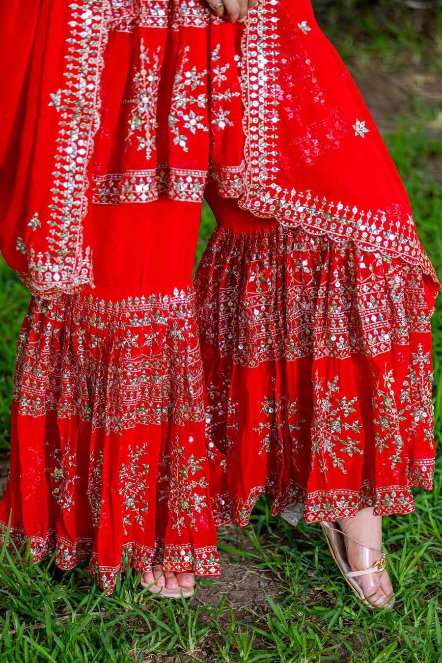 WORK :- HEAVY EMBROIDERY 7 MM SEQUENCE WORK WITH FANCY SLEEVES