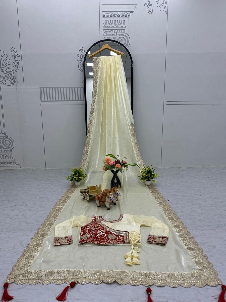 DESIGNER FENDY PITA AND GOTA PATTI WORK SAREE WITH STITCHED BLOUSE RED