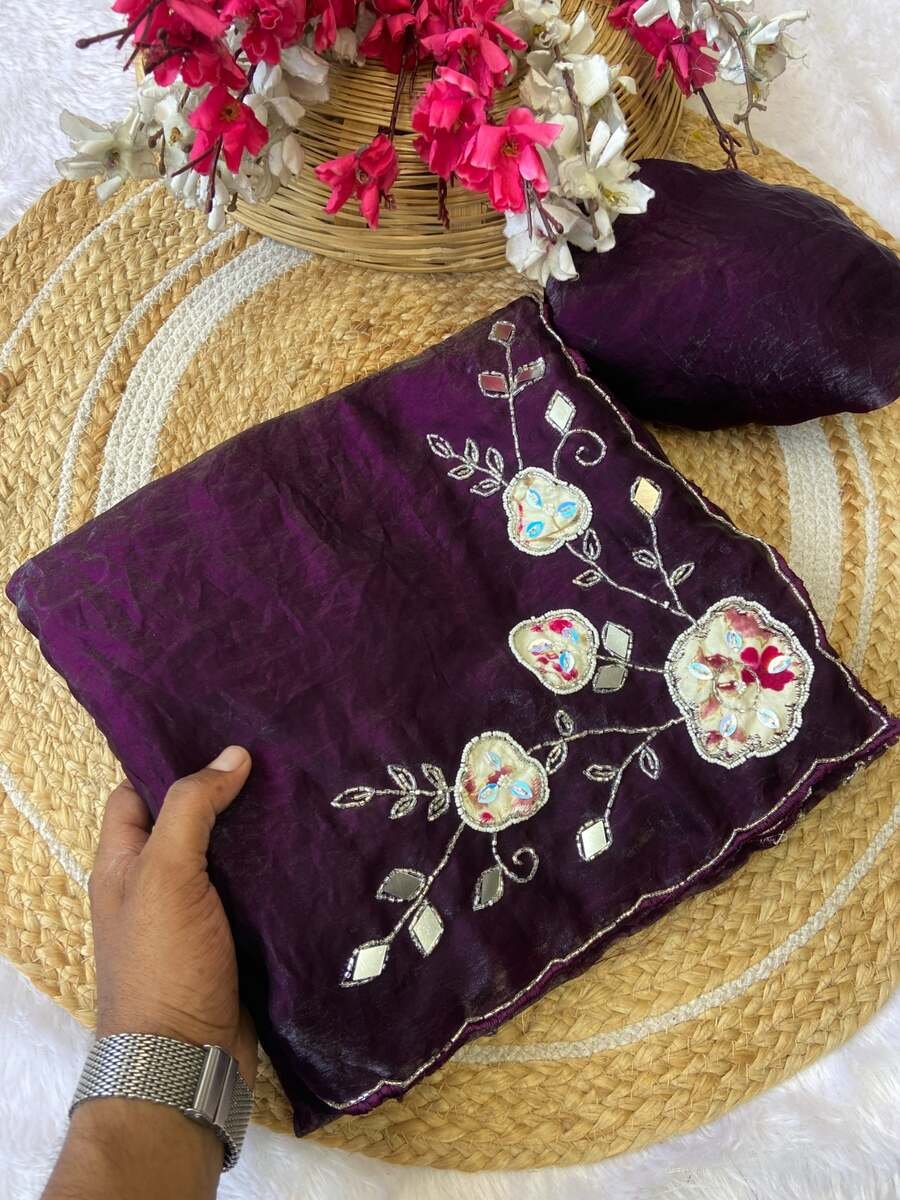 WORK : HAND WORK AND PATCH WORK BUTTA WITH CONTRAST PALLU