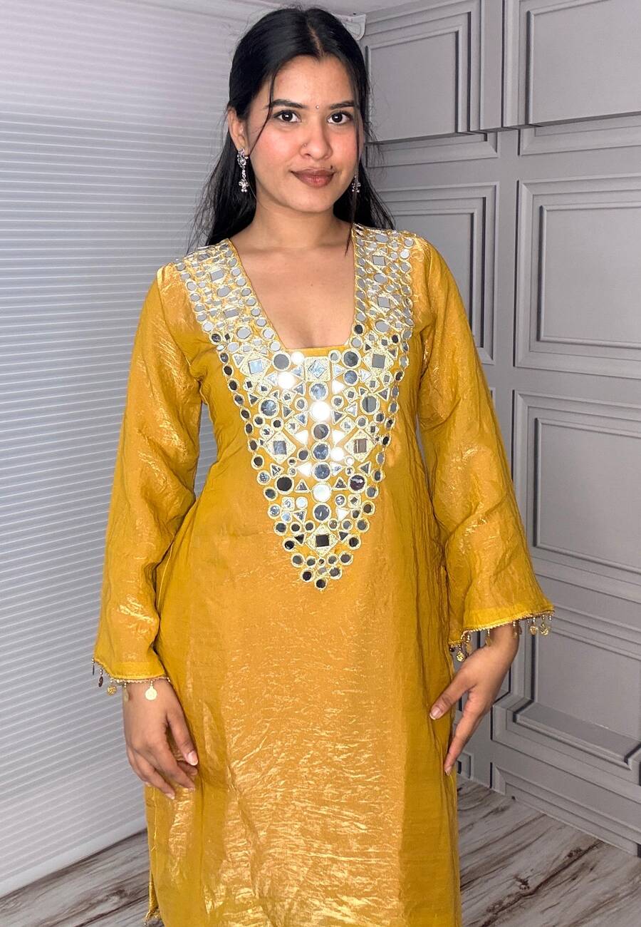 WORK : CODED EMBROIDERY & ORIGINAL MIRROR WORK ON YOKE & COIN LACE WORK ON THE EDGES OF SLEEVES & TOP