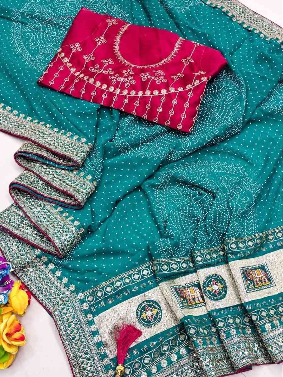 WORK :- HEAVY CODING SEQUENCE BORDER WITH BEAUTIFUL BOX PALLU AND BADHANI FOIL PRINT