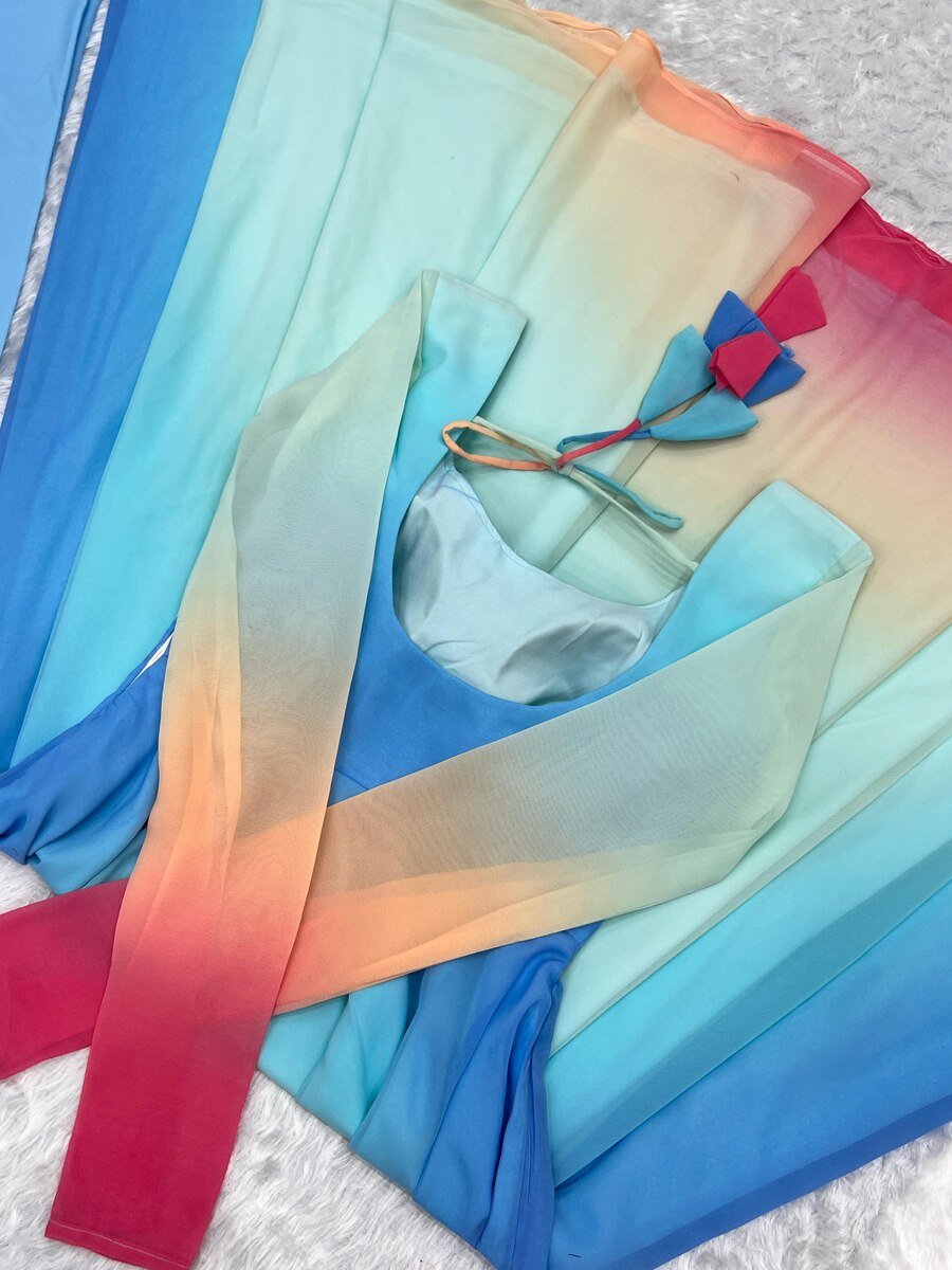 DESIGNER GEORGETTE COLORFUL PADDING GOWN PANT WITH DUPATTA MULTI