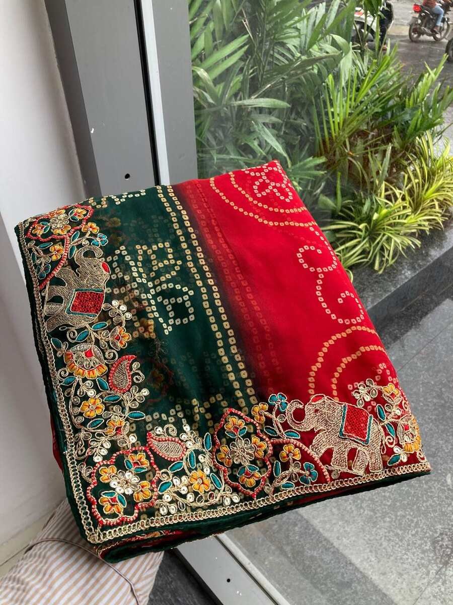 DESIGNER GEORGETTE DIGITAL PRINT WITH CONTRAST PALLU EMBROIDERY WORK SAREE WITH UNSTITCHED BLOUSE RED