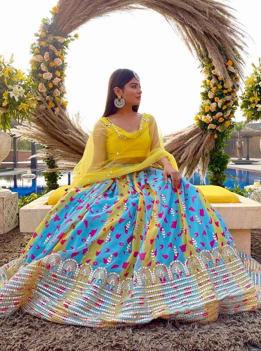 WORK : DIGITAL PRINT WITH PAPER MIRROR WORK AND ZARI WORK WITH CANVAS PATTA
