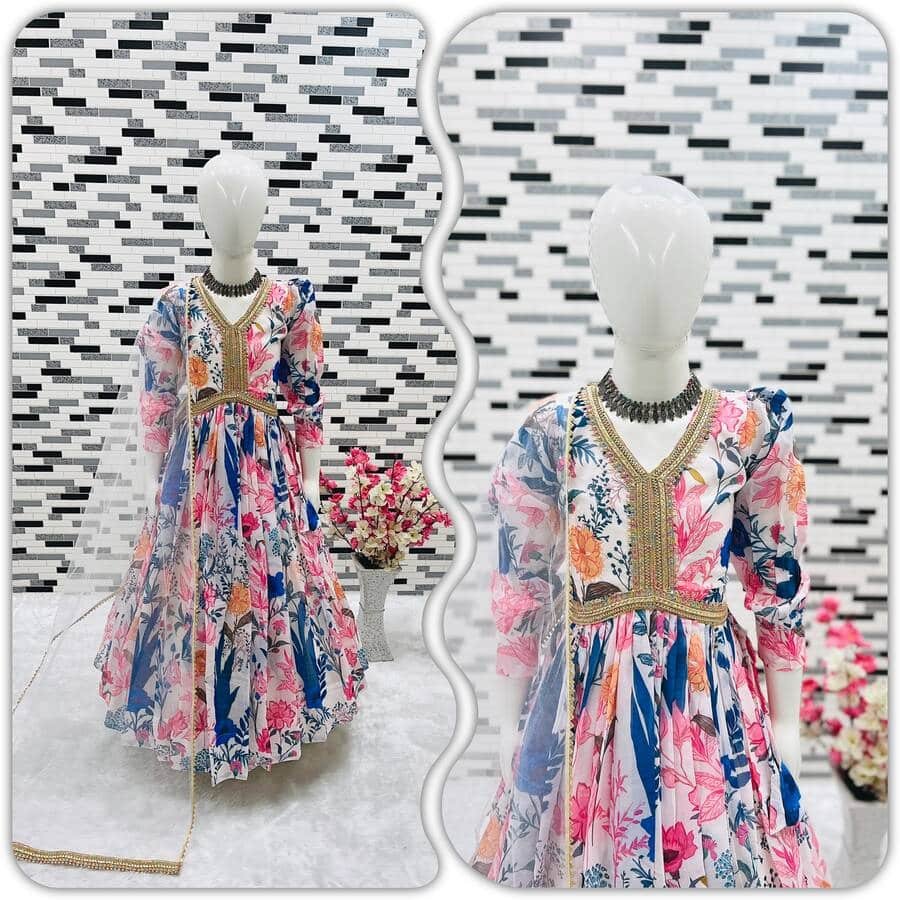 DESIGNER GEORGETTE DIGITAL PRINT WORK KIDS GOWN WITH DUPATTA MULTI