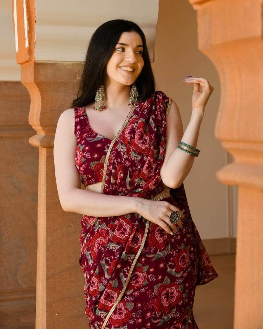 DESIGNER GEORGETTE DIGITAL PRINT WORK LEHENGA SAREE BLOUSE WITH DUPATTA MAROON