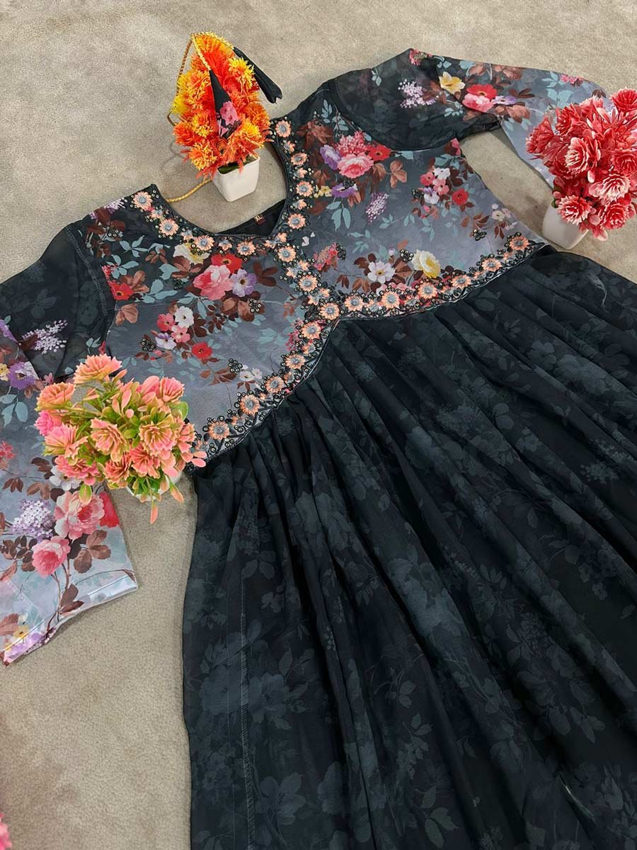 GOWN FABRIC :- FAUX GEORGETTE WITH DIGITAL PRINT DESIGN WITH EMBROIDERY DESIGN WORK