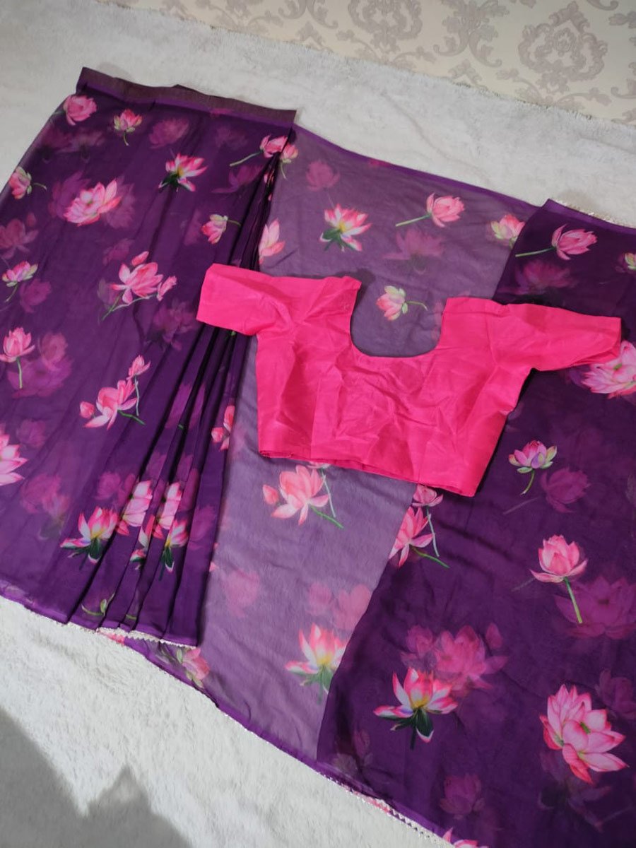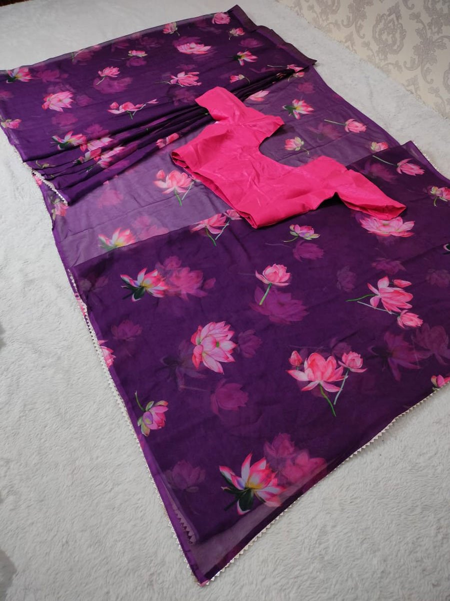 SAREE FABRIC : FAUX GEORGETTE WITH DIGITAL PRINT AND LACE WORK