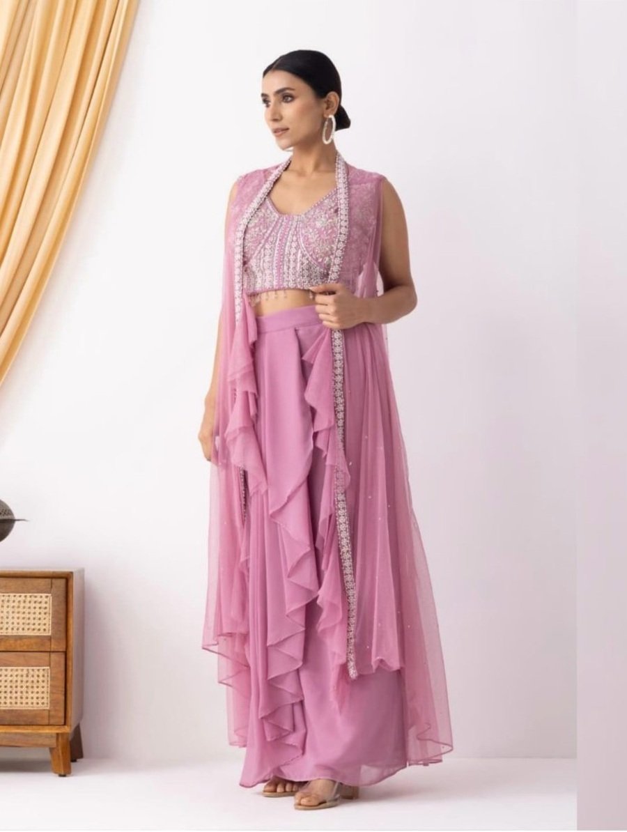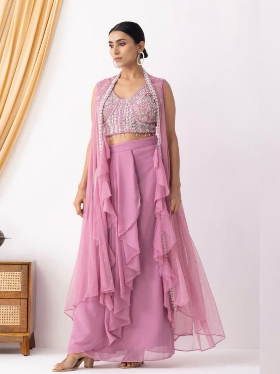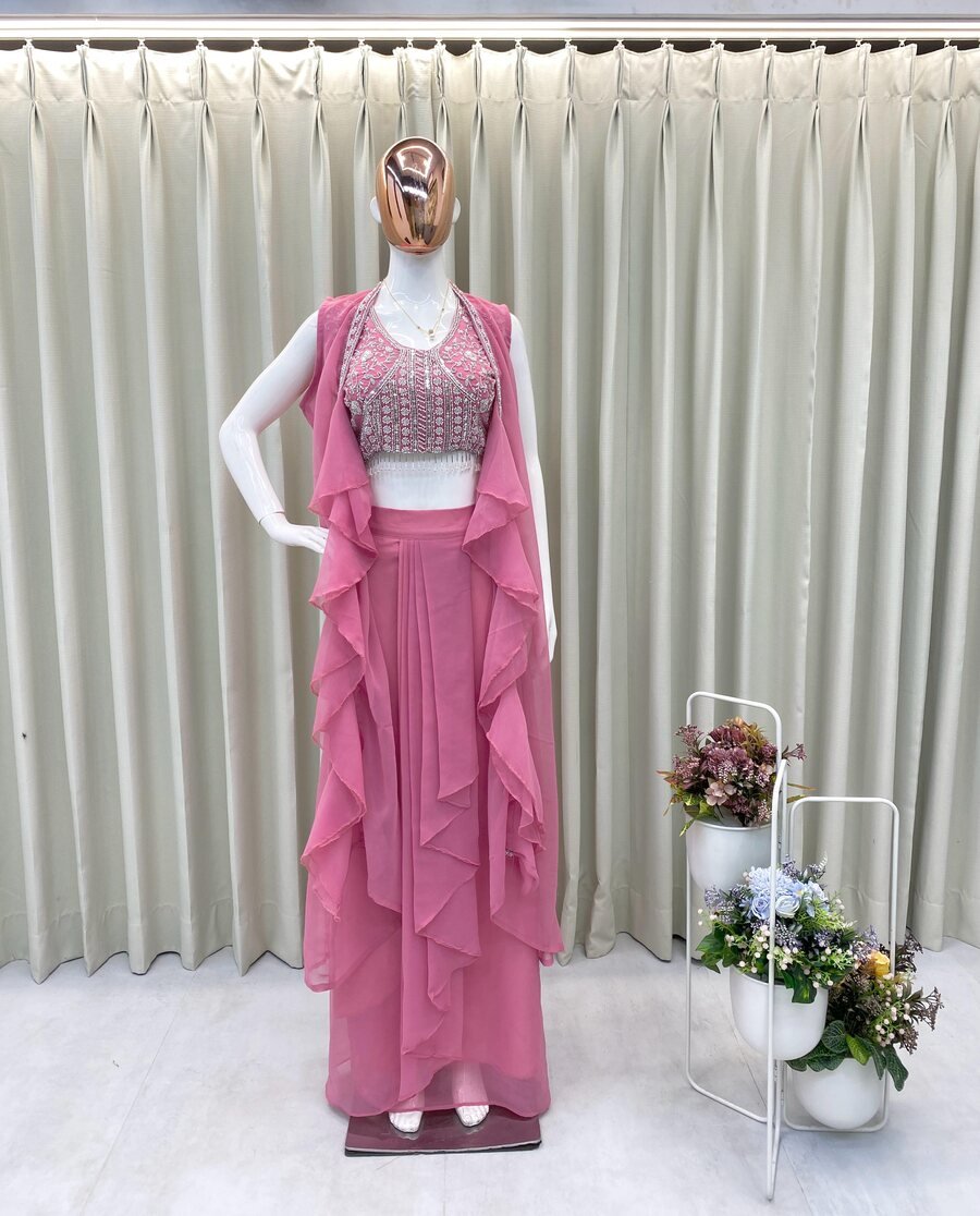 WORK : EMBROIDERY SEQUENCE BEADS WORK AND RUFFLES ( FREE SIZE)