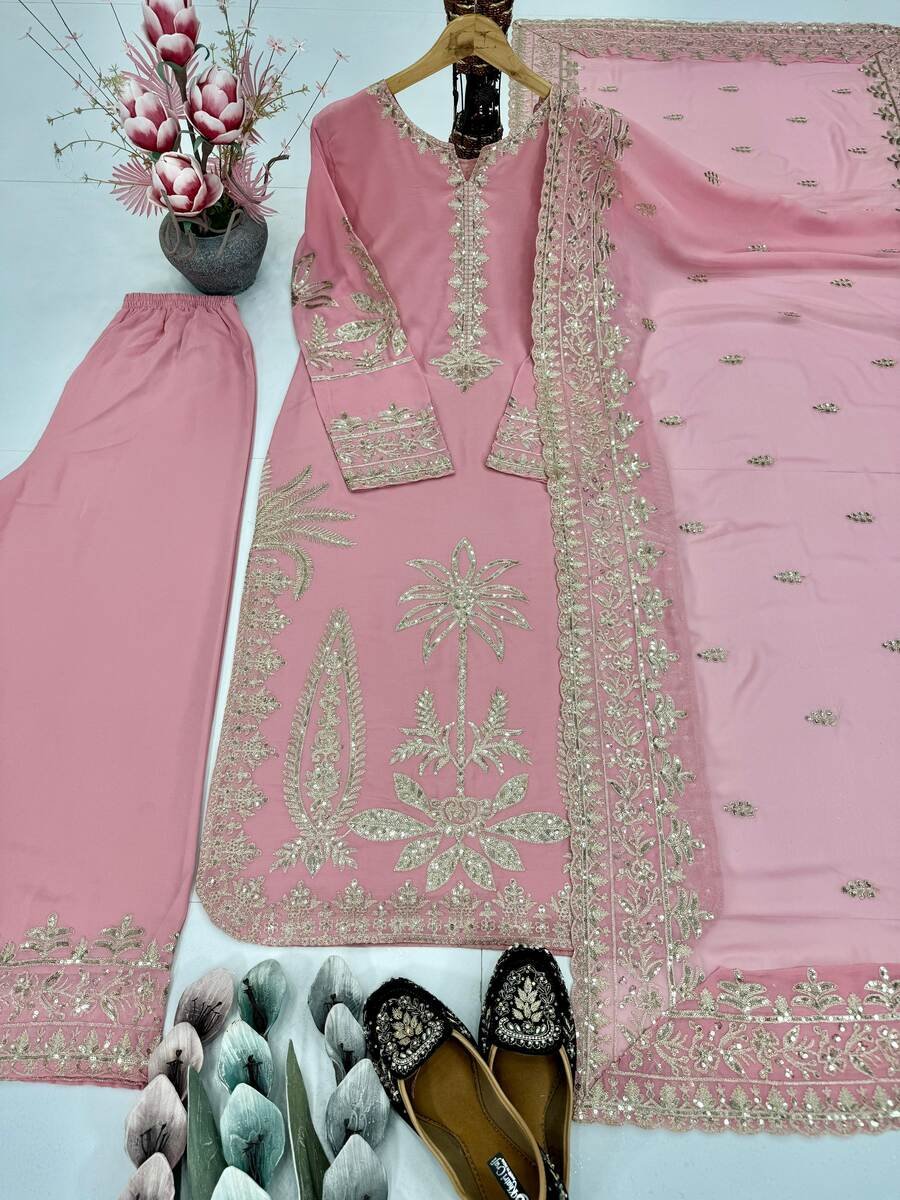 DESIGNER GEORGETTE EMBROIDERY CHAIN SEQUENCE WORK TOP PALAZZO WITH DUPATTA BABY PINK