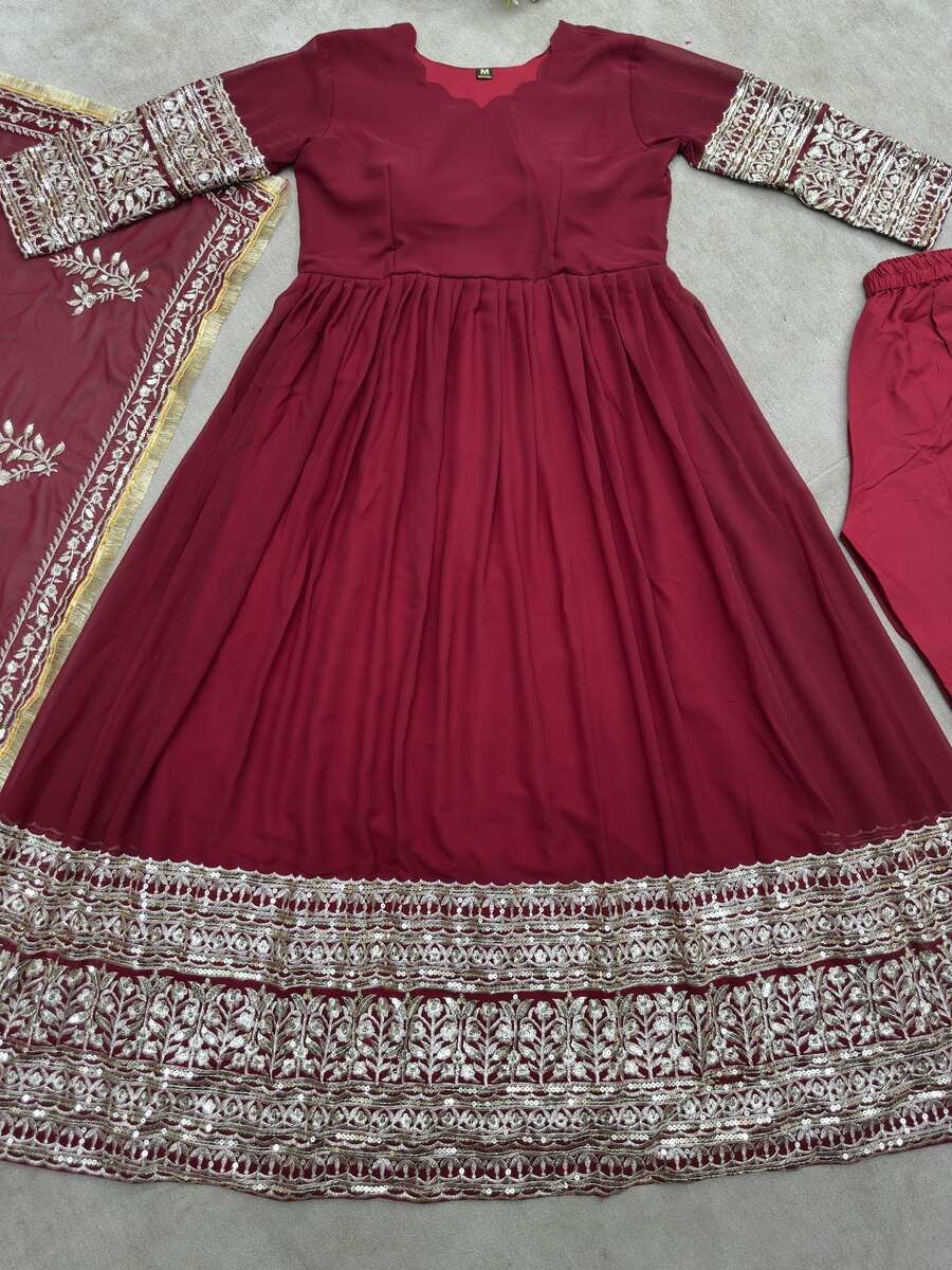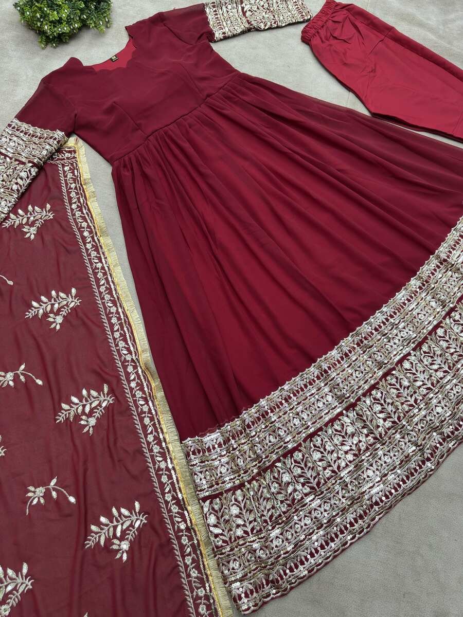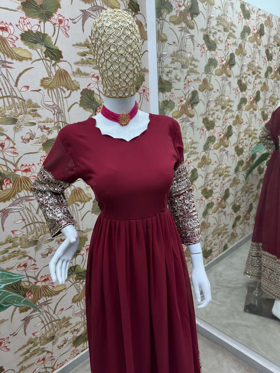 DESIGNER GEORGETTE EMBROIDERY SEQUENCE DESIGN WORK GOWN BOTTOM WITH DUPATTA MAROON