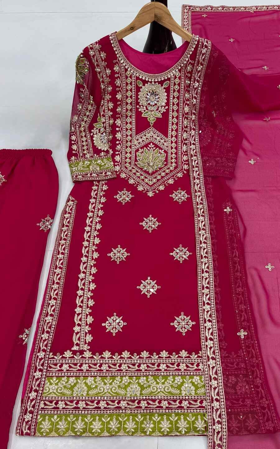 DESIGNER GEORGETTE EMBROIDERY SEQUENCE MOTI WORK TOP PALAZZO WITH DUPATTA RANI
