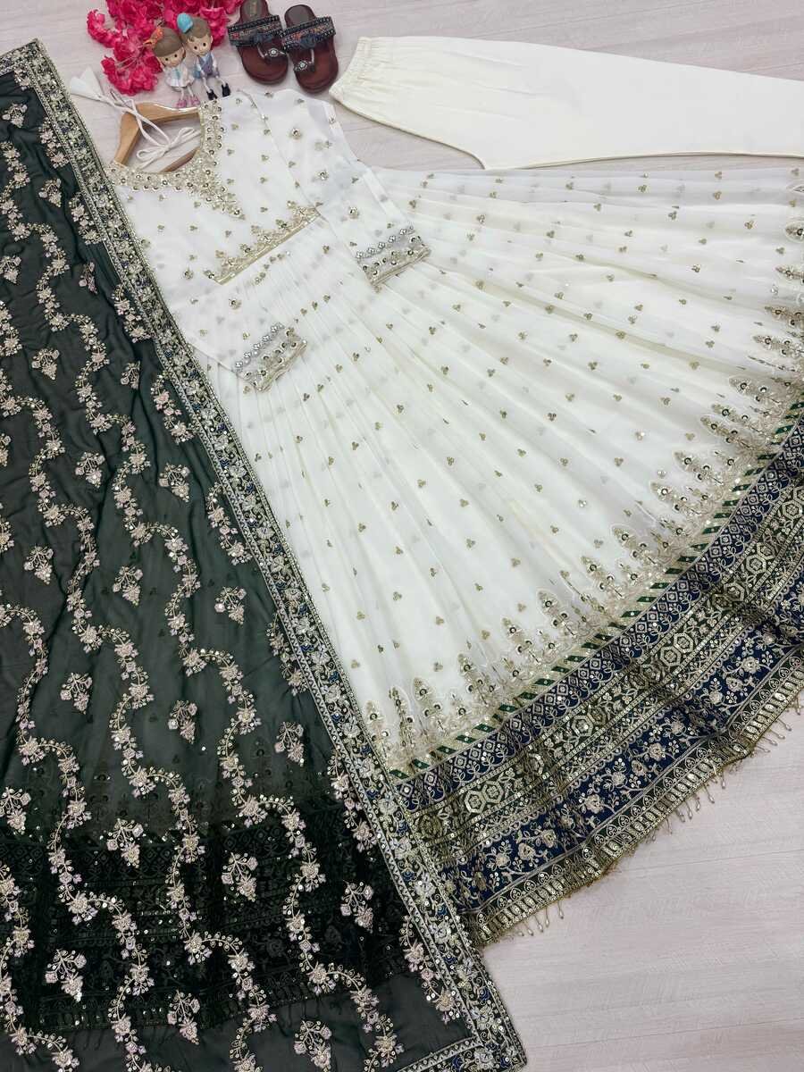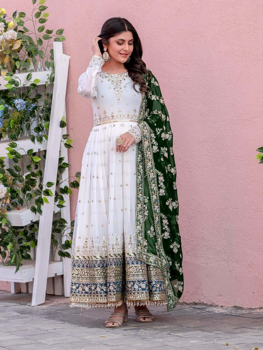 DESIGNER GEORGETTE EMBROIDERY SEQUENCE WITH FANCY LATKAN BORDER LACE WORK GOWN BOTTOM WITH DUPATTA GREEN