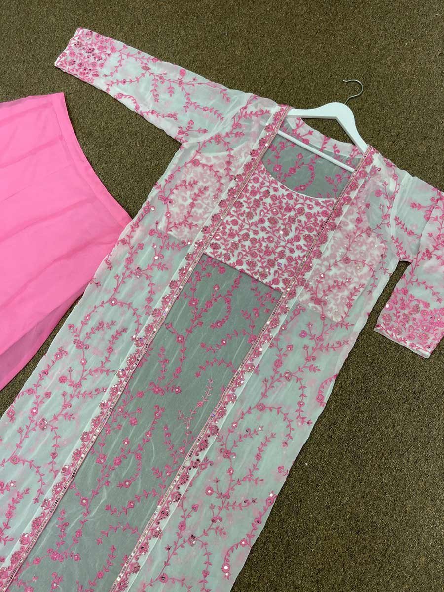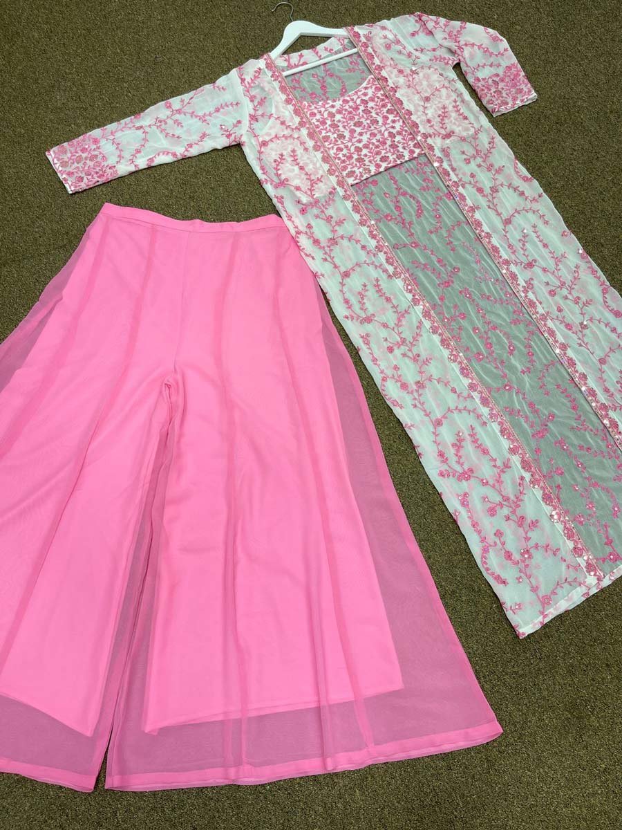 DESIGNER GEORGETTE EMBROIDERY SEQUENCE WORK CHOLI PALAZZO WITH KOTI PINK