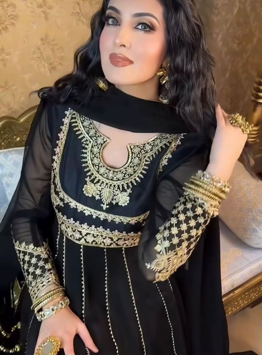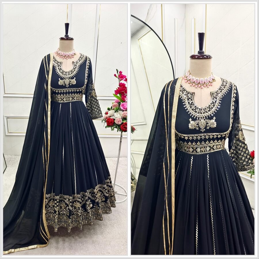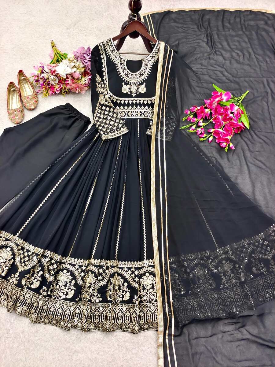 DESIGNER GEORGETTE EMBROIDERY SEQUENCE WORK GOWN BOTTOM WITH DUPATTA BLACK