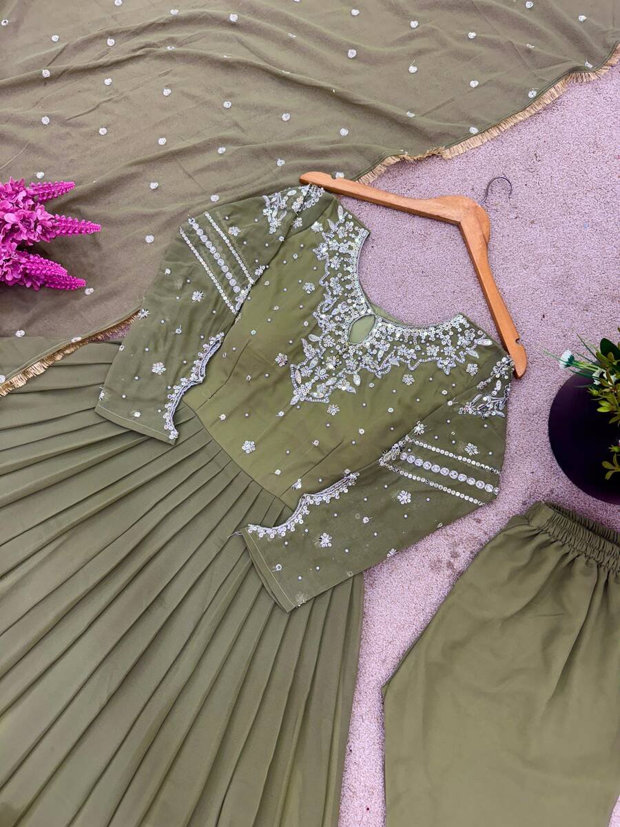 DESIGNER GEORGETTE EMBROIDERY SEQUENCE WORK GOWN BOTTOM WITH DUPATTA MINT