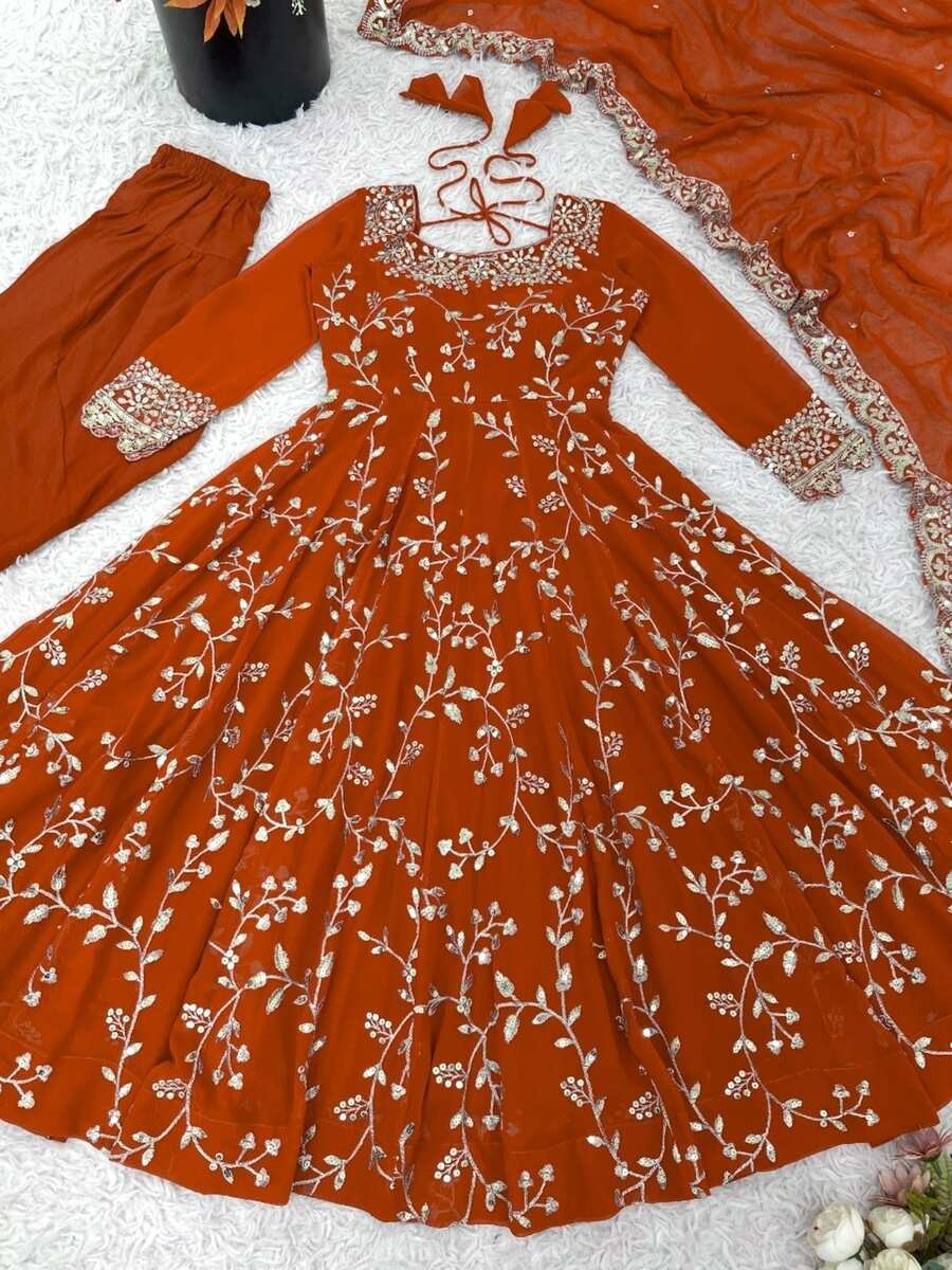 DESIGNER GEORGETTE EMBROIDERY SEQUENCE WORK GOWN BOTTOM WITH DUPATTA ORANGE