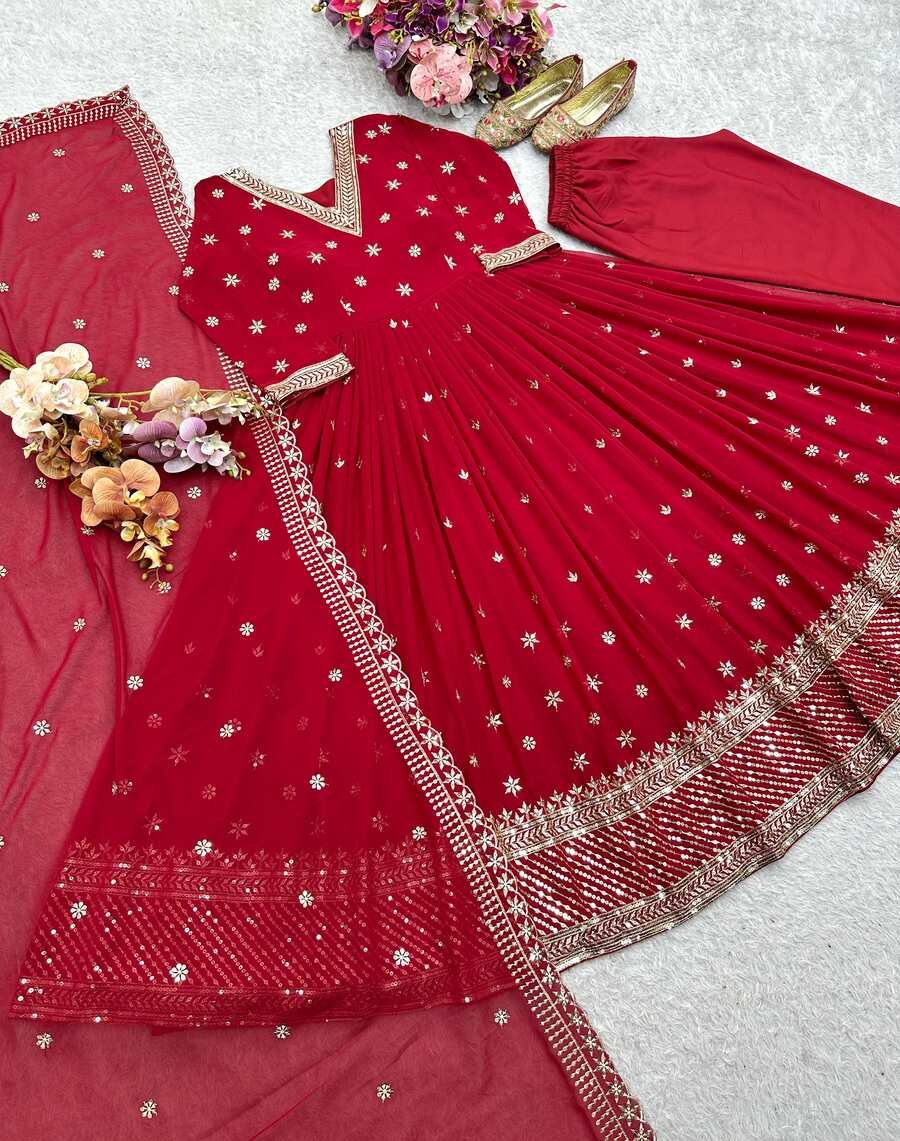 WORK : HEAVY EMBROIDERY 5MM SEQUENCE WORK WITH FULL-SLEEVE WITH COVER PATTA (ATTACHED PAD)