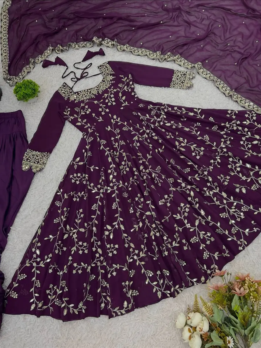 DESIGNER GEORGETTE EMBROIDERY SEQUENCE WORK GOWN BOTTOM WITH DUPATTA WINE