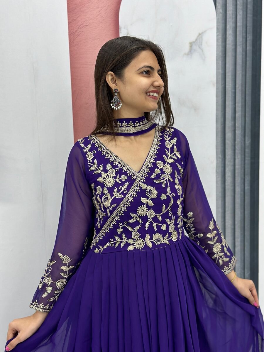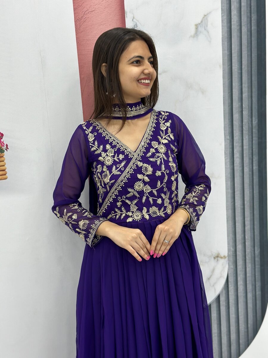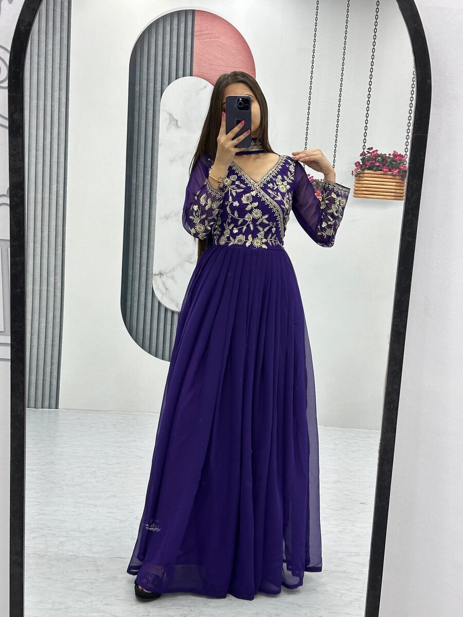DESIGNER GEORGETTE EMBROIDERY SEQUENCE WORK GOWN WITH DUPATTA PURPLE