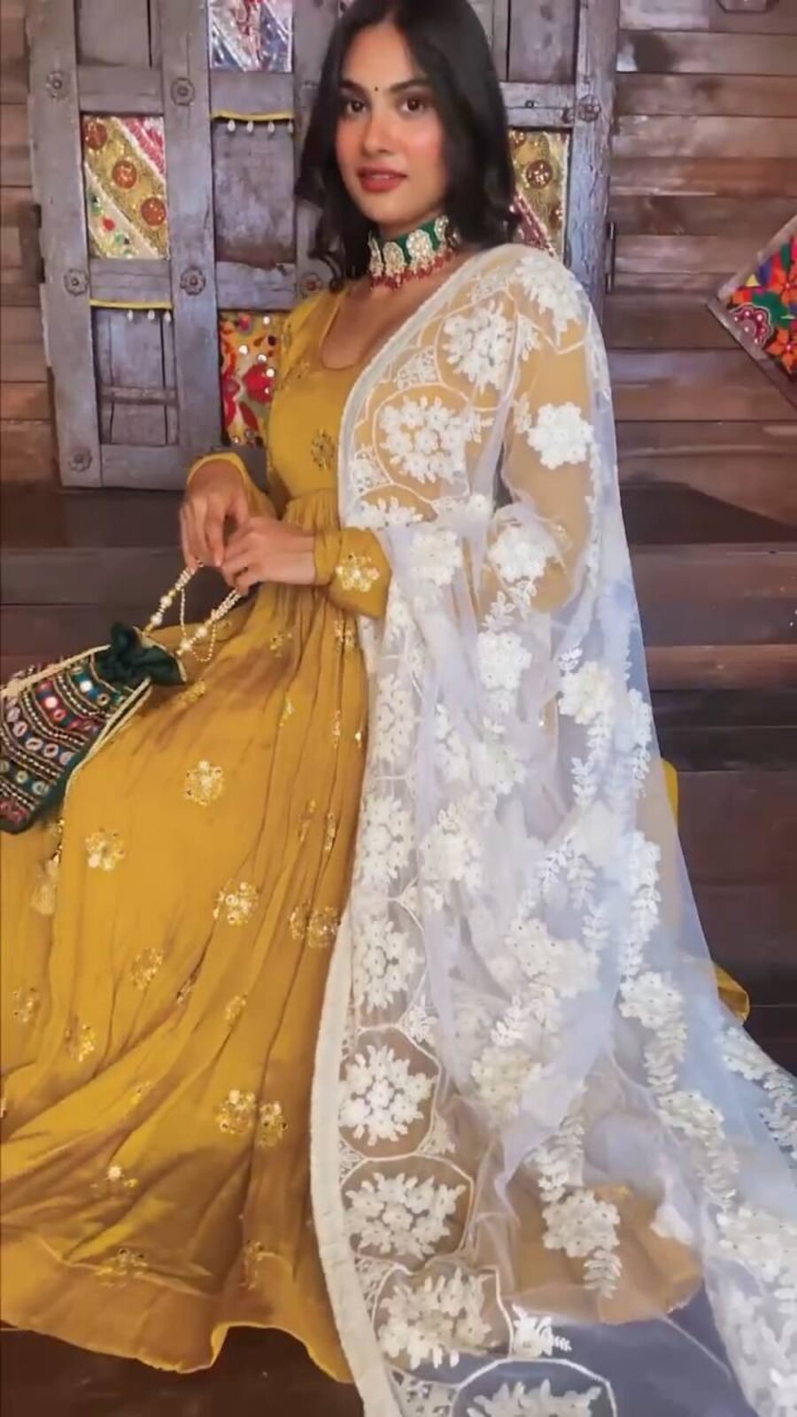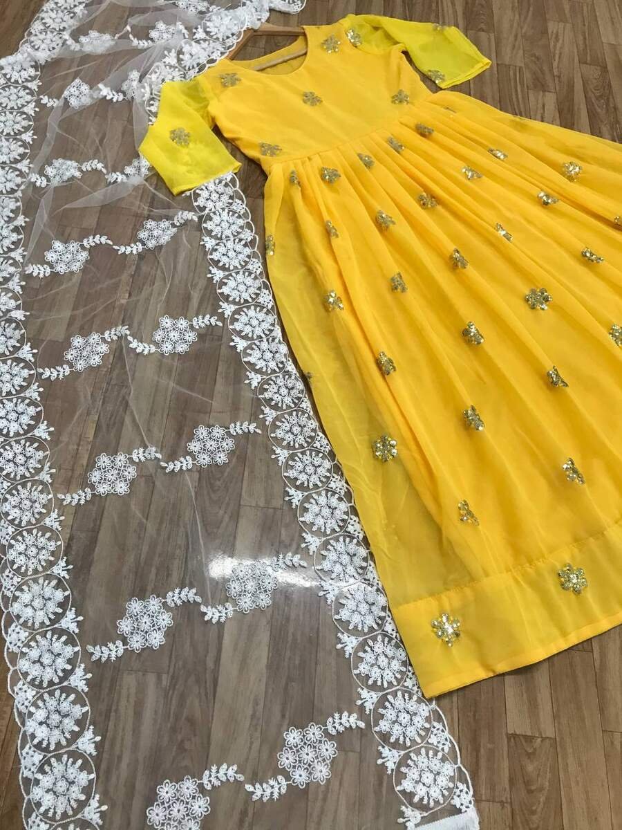 GOWN FABRIC : GEORGETTE WITH EMBROIDERY SEQUENCE DESIGN WORK