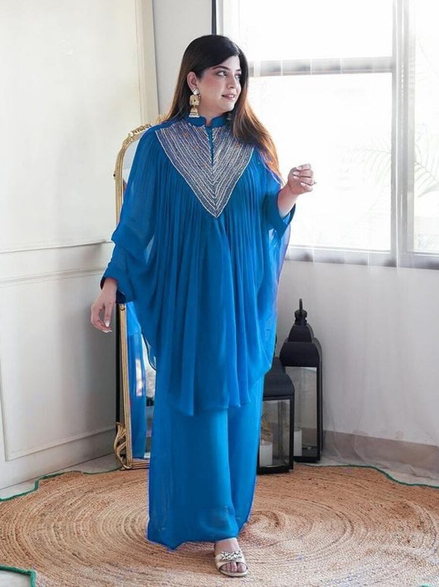 KAFTAN :- BLOOMING FAUX GEORGETTE