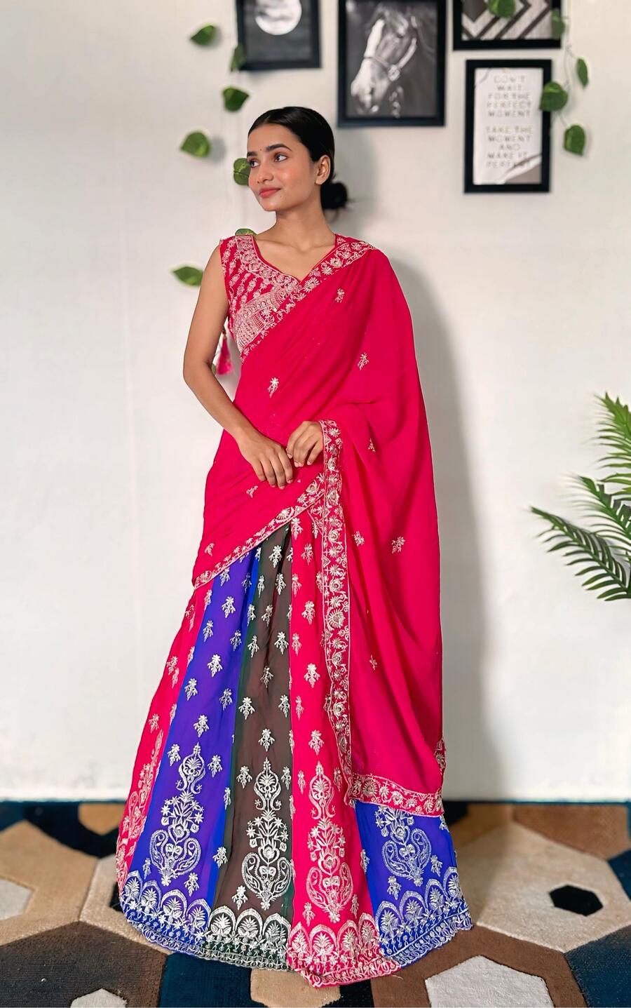 FABRIC :- FAUX GEORGETTE WITH EMBROIDERY DESIGN WORK