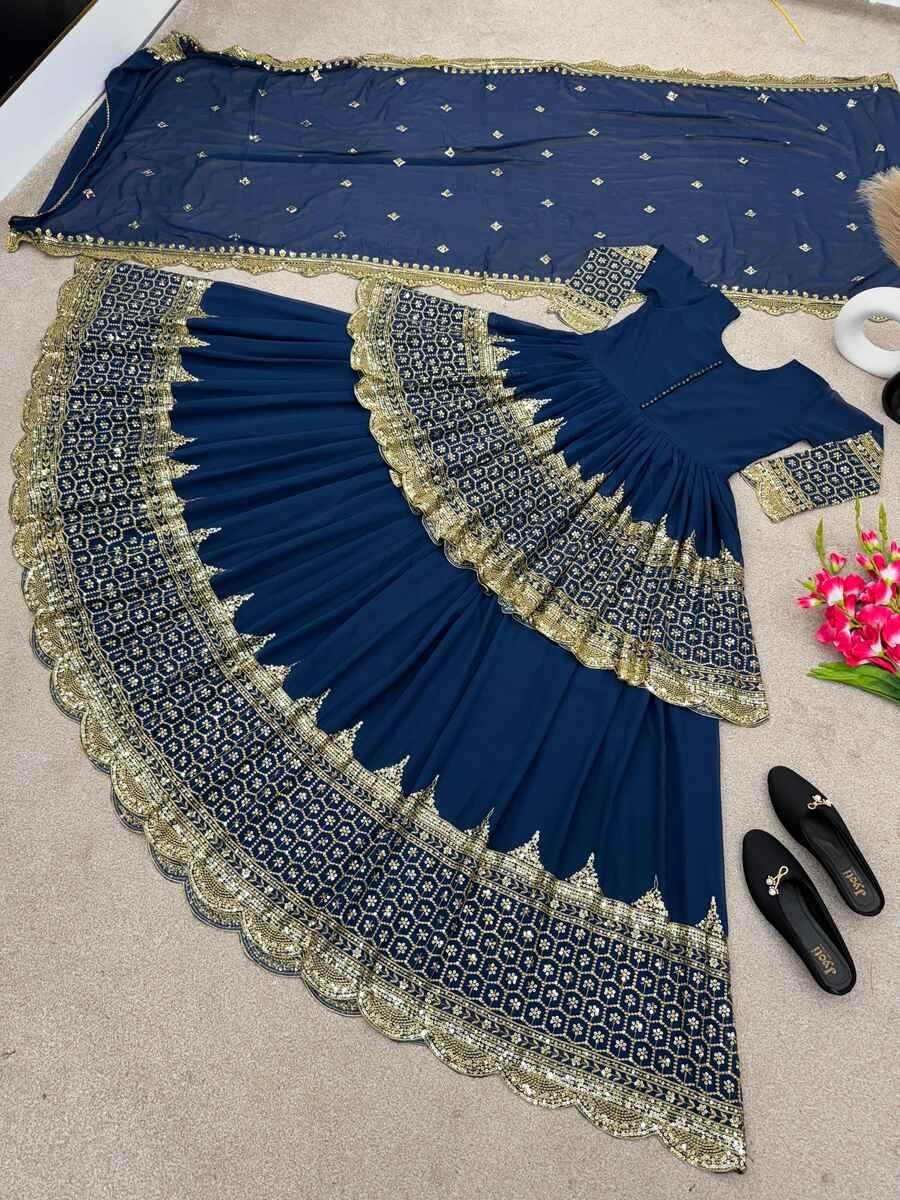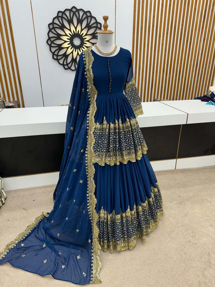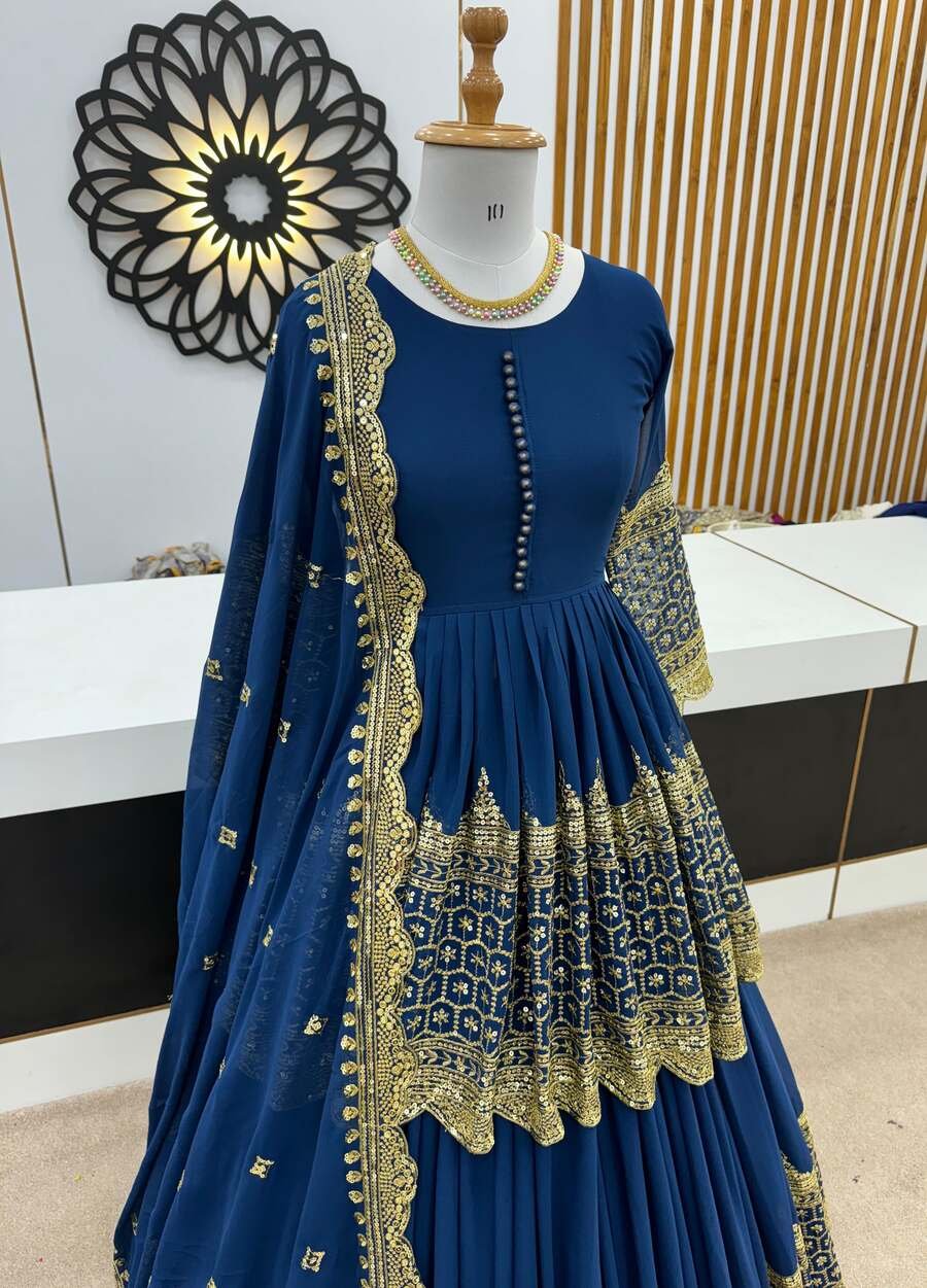 DESIGNER GEORGETTE EMBROIDERY SEQUENCE WORK TOP LEHENGA TOP WITH DUPATTA BLUE