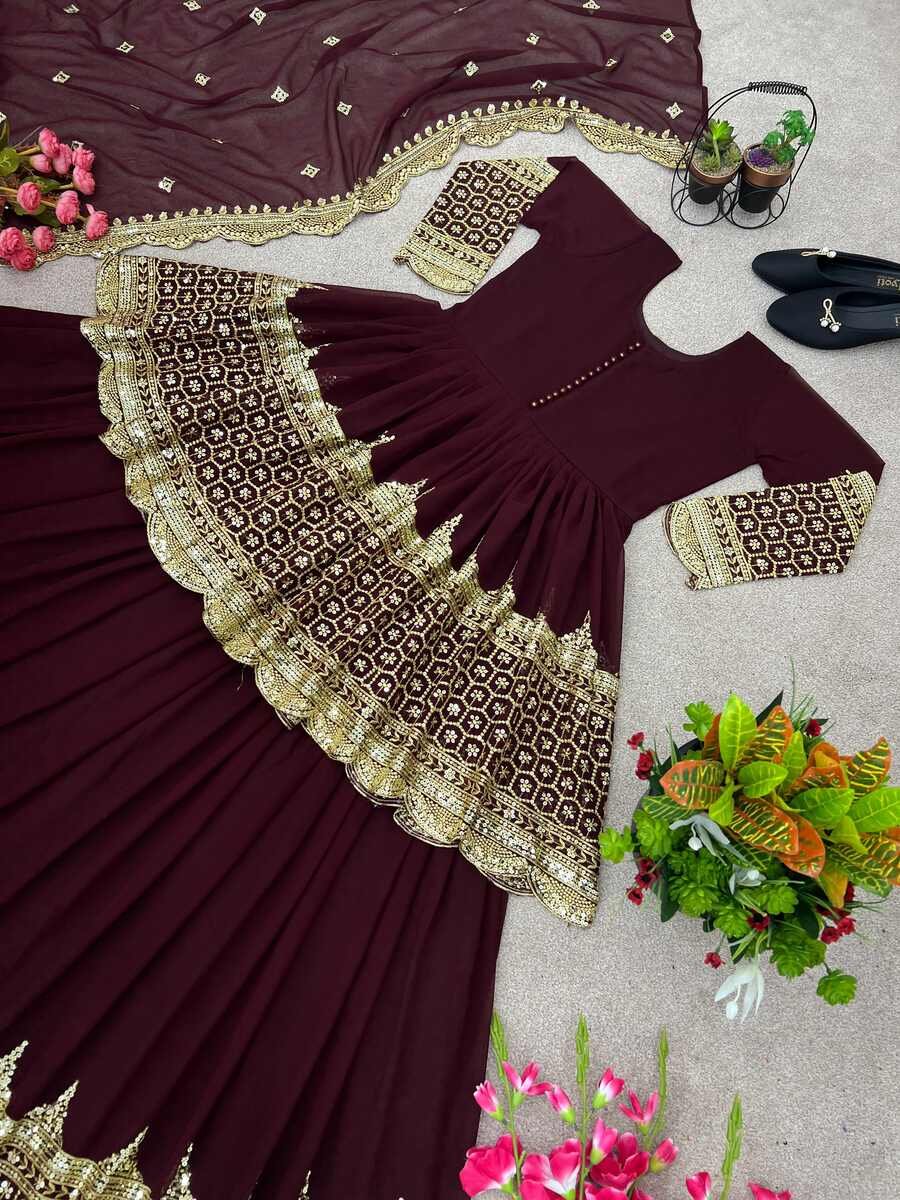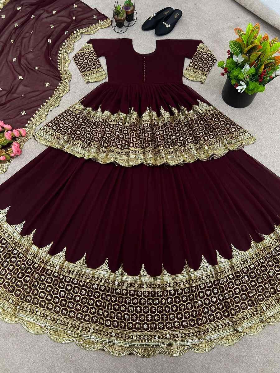 DESIGNER GEORGETTE EMBROIDERY SEQUENCE WORK TOP LEHENGA WITH DUPATTA BROWN