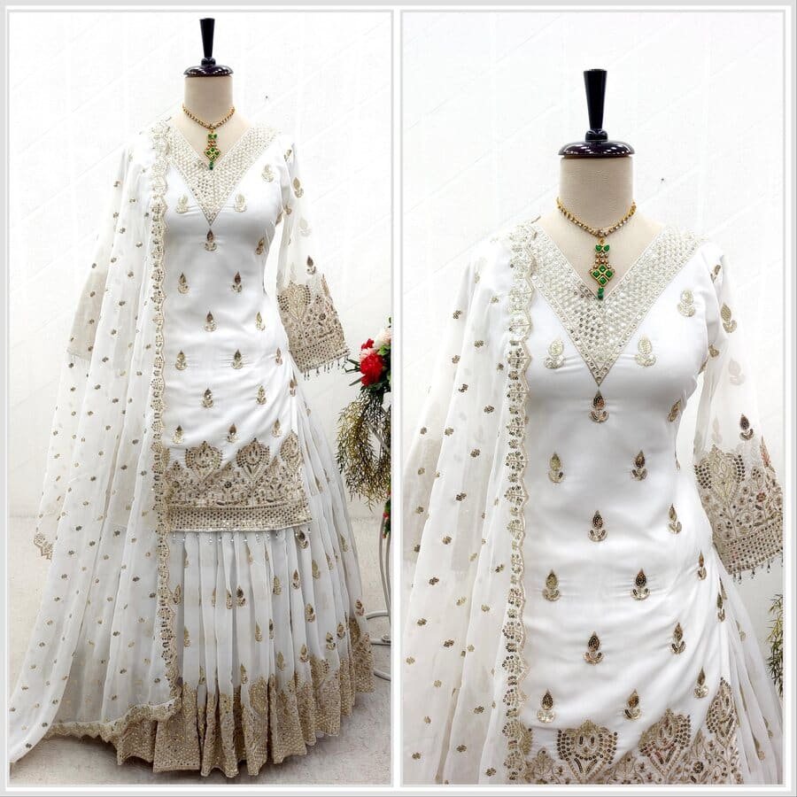 DESIGNER GEORGETTE EMBROIDERY SEQUENCE WORK TOP LEHENGA WITH DUPATTA WHITE