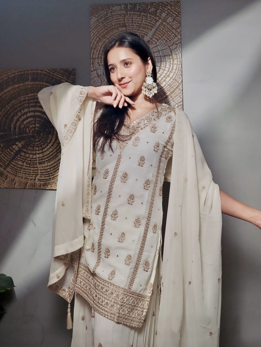 TOP FABRIC : PURE FAUX GEORGETTE WITH HEAVY EMBROIDERY 5MM SEQUENCE WORK WITH FULL-SLEEVES