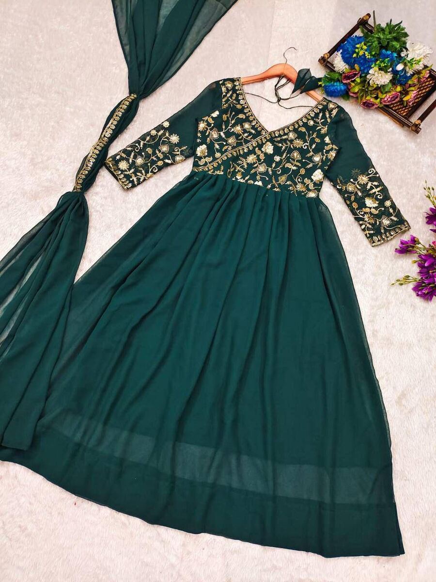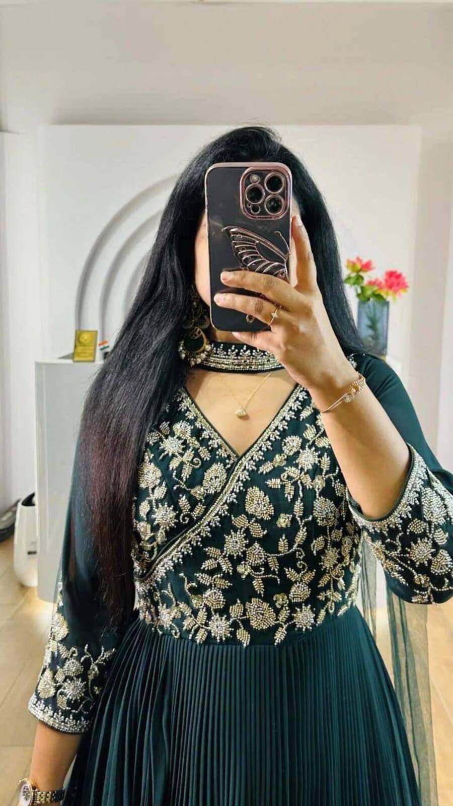 WORK :- EMBROIDERY THREAD WORK ALL OVER THE NECK AND SLEEVES